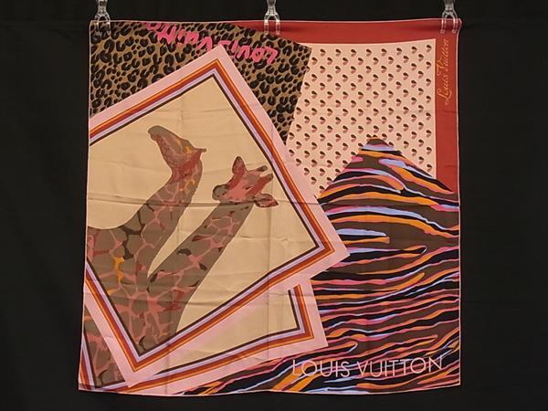 1円 ■極美品■ LOUIS VUITTON ルイヴィトン キリン 麒麟 大判 スカーフ ストール ショール レディース ピンク系×マルチカラー FS1993