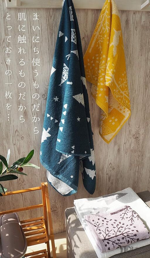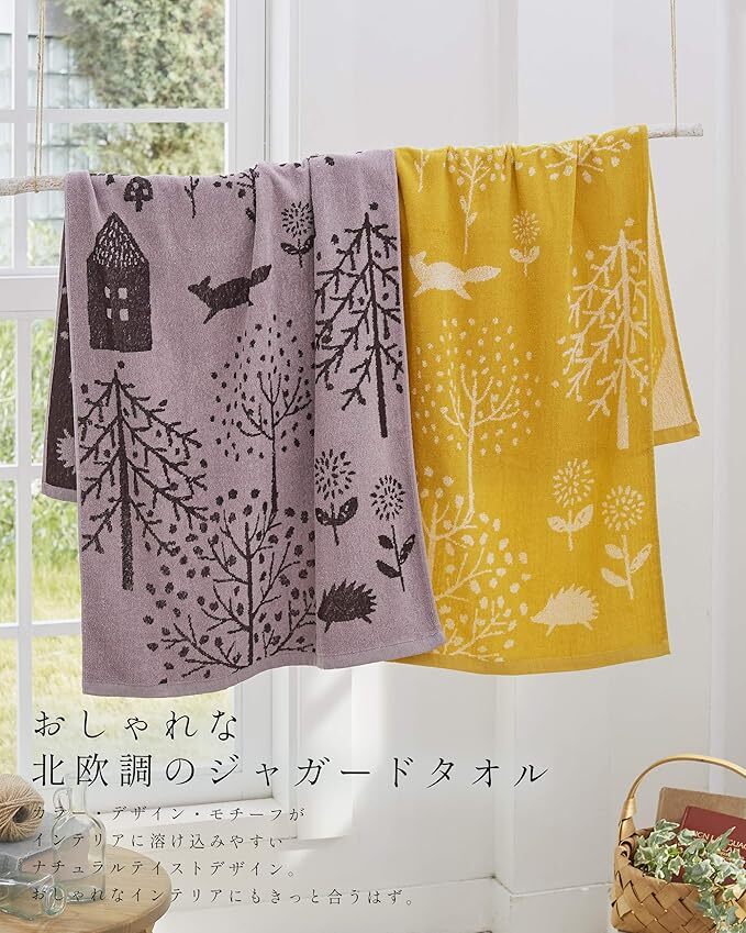 Kosugizen バスタオル 北欧調ジャガード ノーザン 2色各1枚入 60×120㎝ 北欧風モチーフ 薄手タイプ 2枚セット SV-6513-2