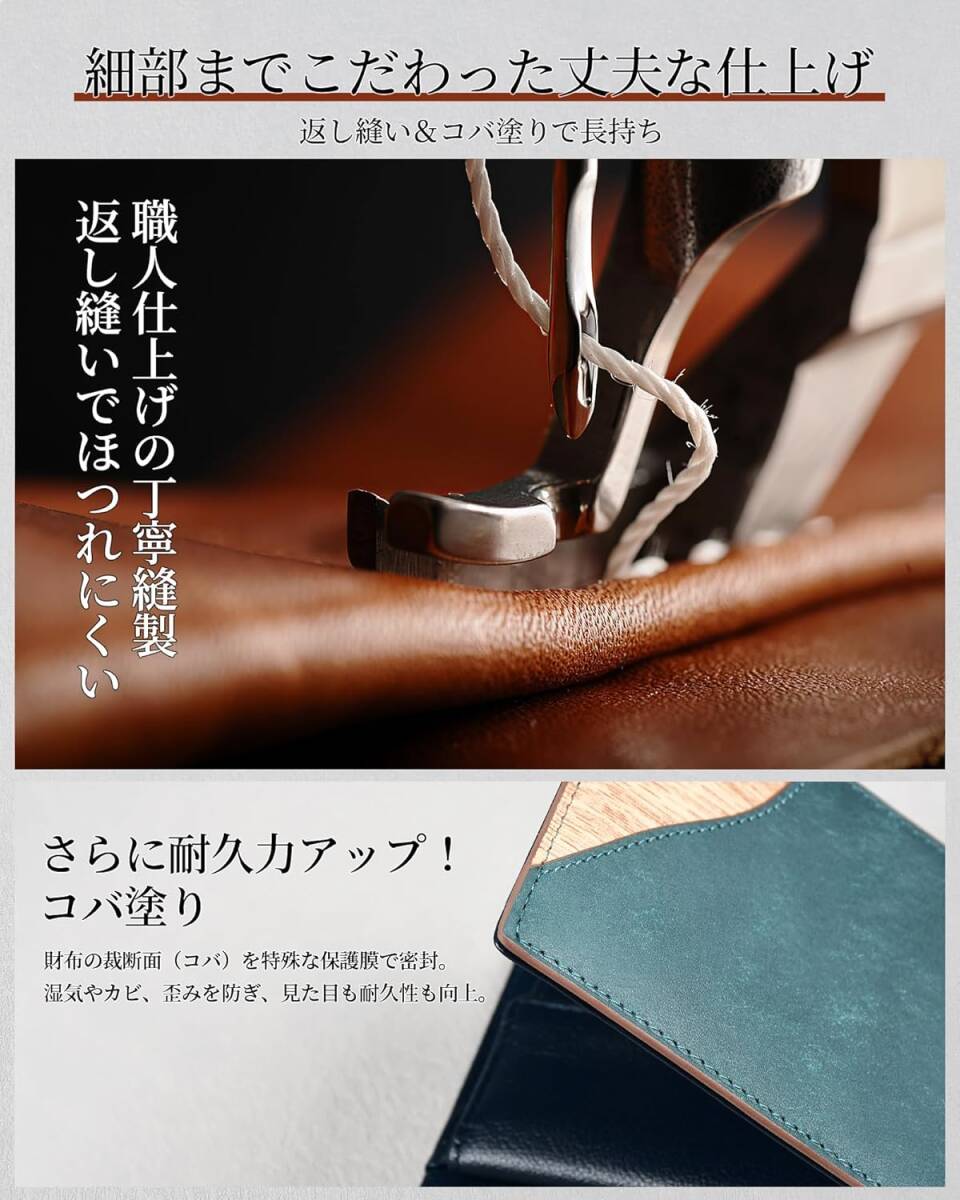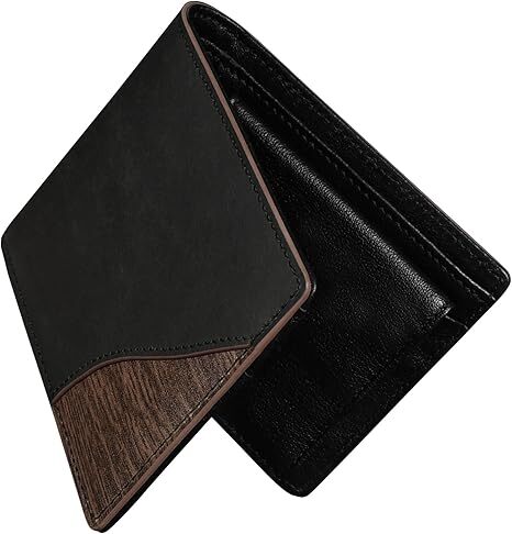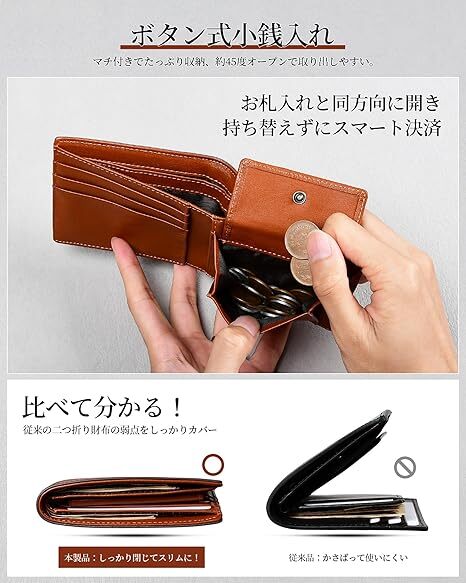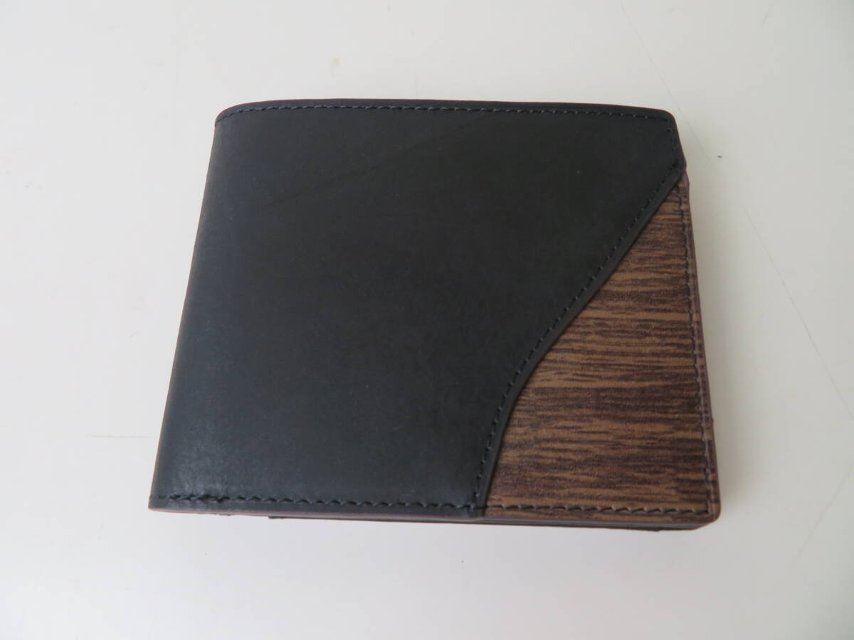 ◆【未使用・新品】プエブロレザー 財布 メンズ 2つ折り 本革 ボタン式小銭入れ カード9枚 レシートと札を分ける札入れ 木目調 耐久性 黒色