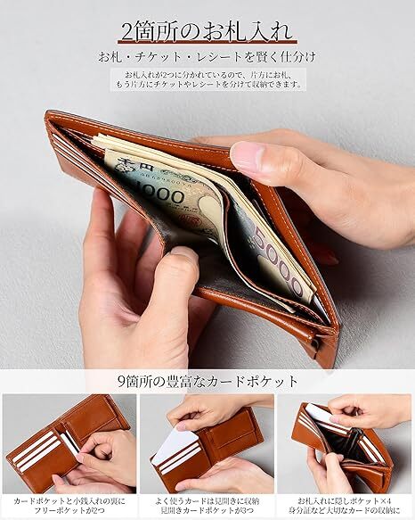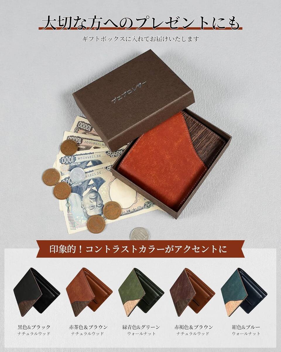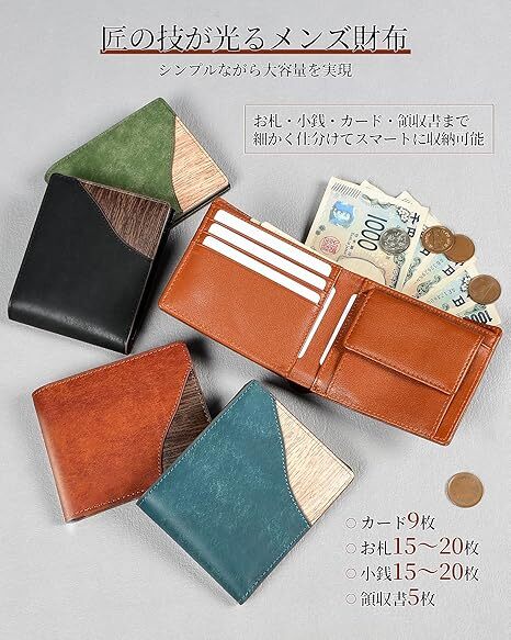 カード9枚 レシートと札を分ける札入れ 木目調 シンプル 耐久性