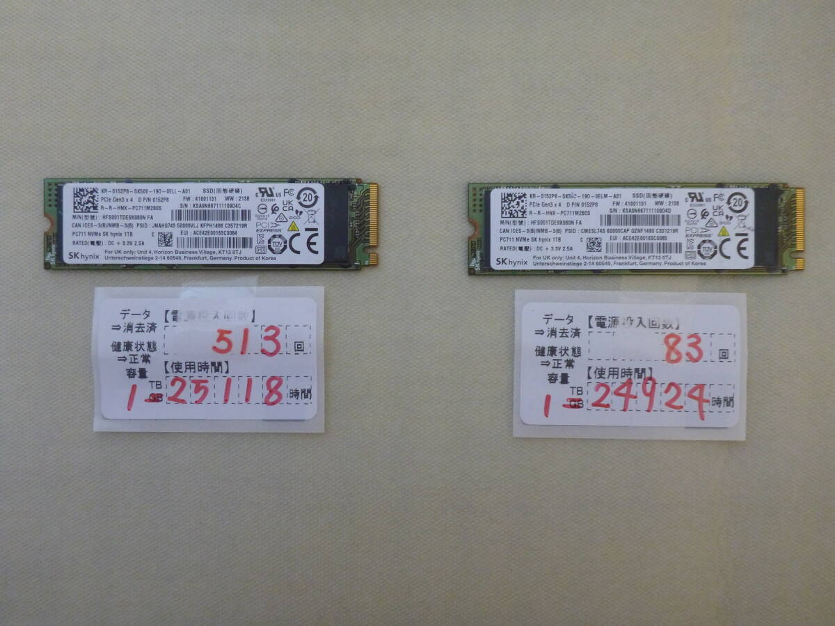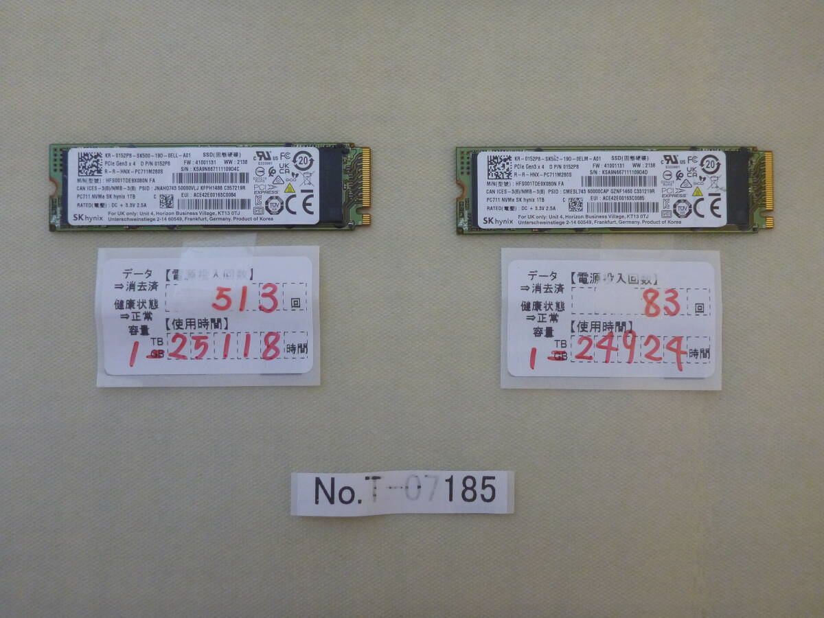 T-07185 / SSD / SKhynix / M.2 2280 / NVMe / 1TB / 2個セット / ゆうパケット / 消去済み / ジャンク扱い | |||