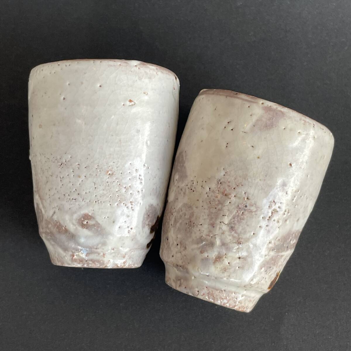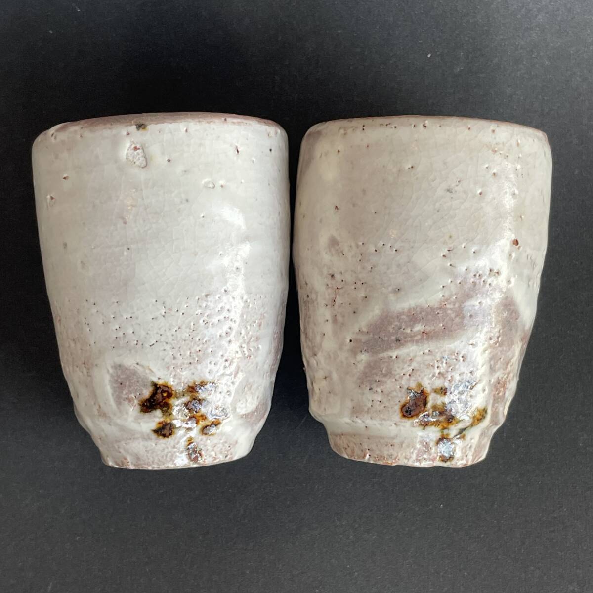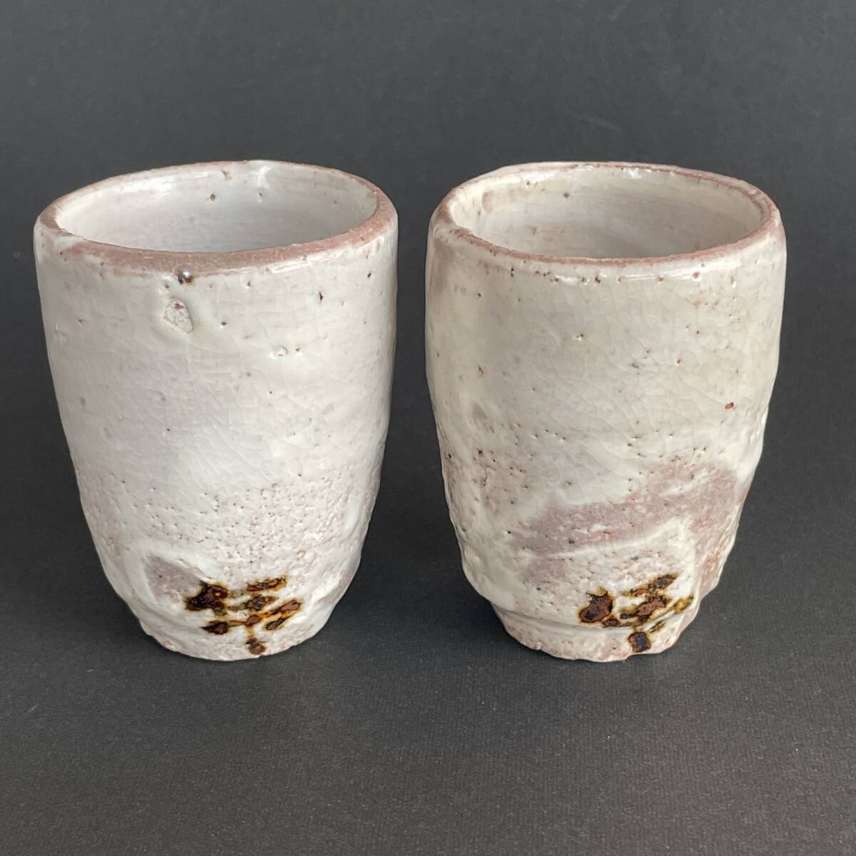 人間国宝 荒川豊蔵 水月窯 虎渓山 美濃焼 酒盃 ぐい呑 酒器 2客 ペア 美品