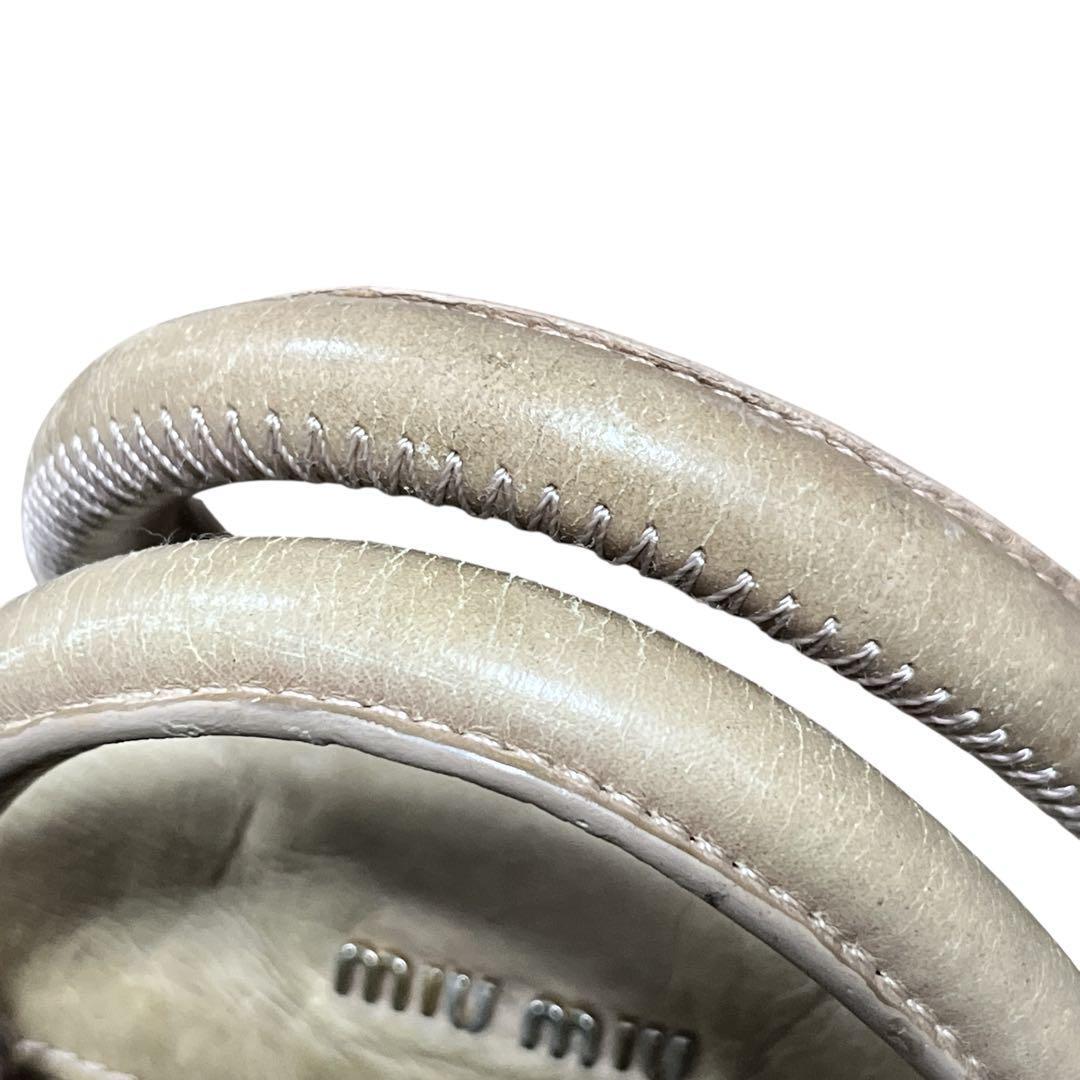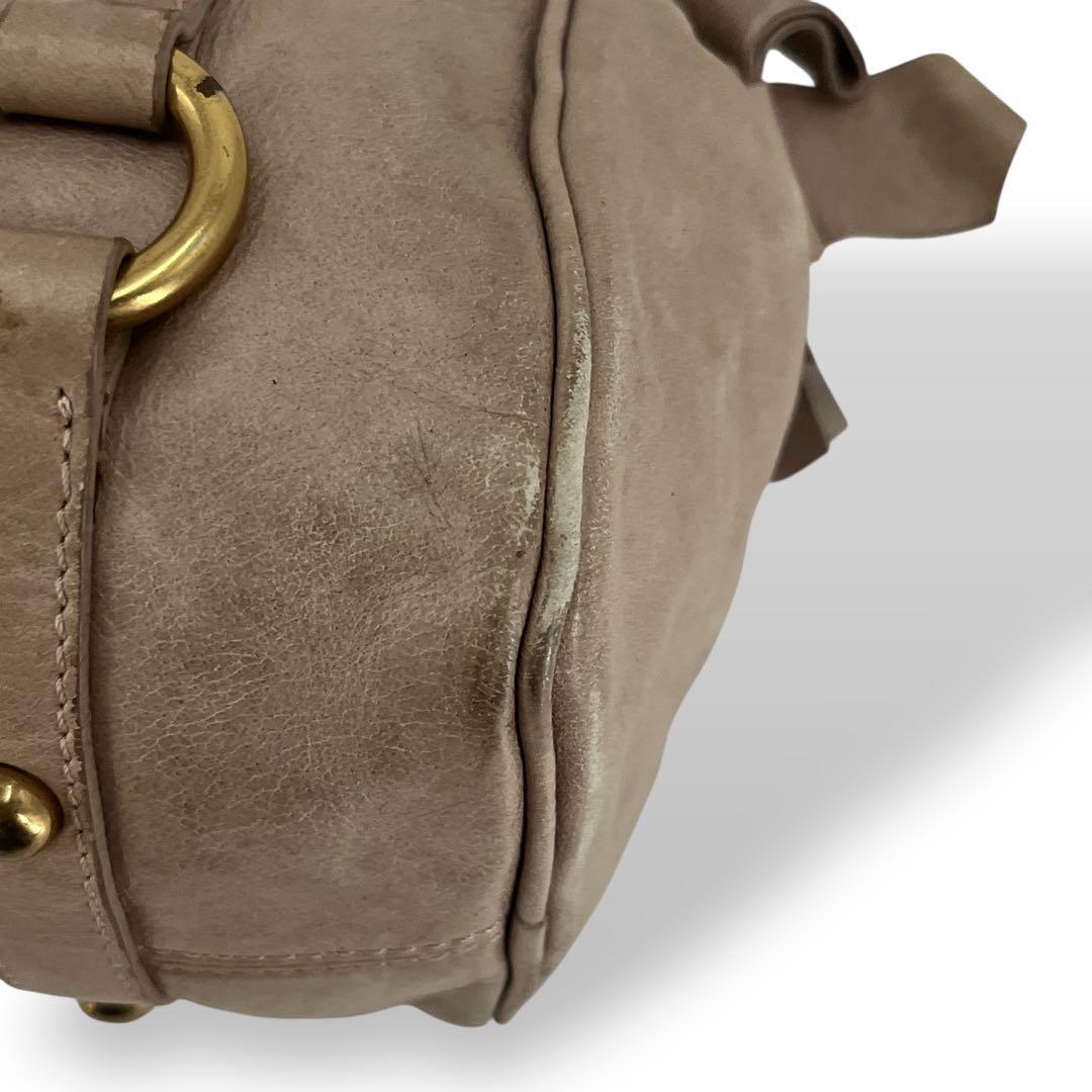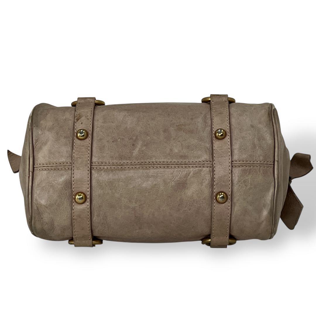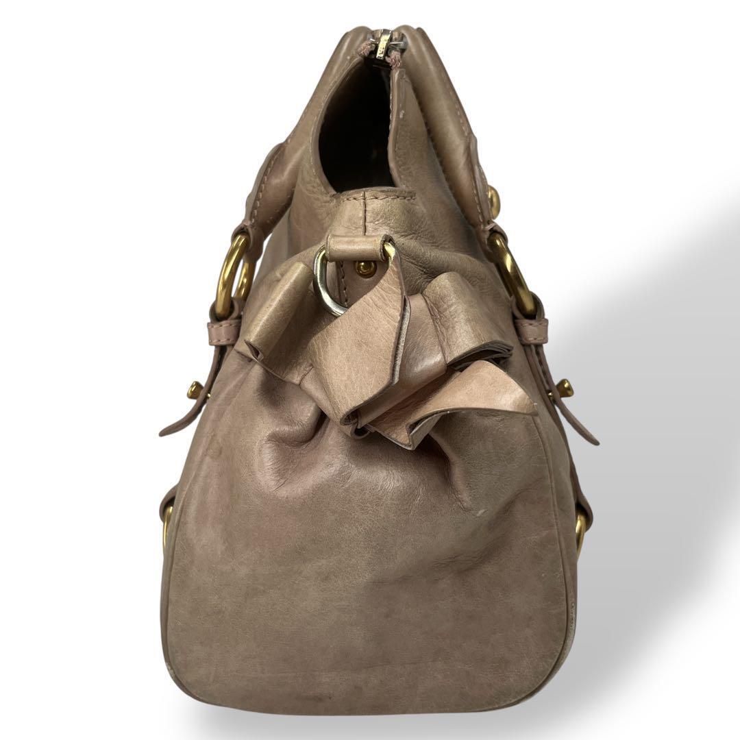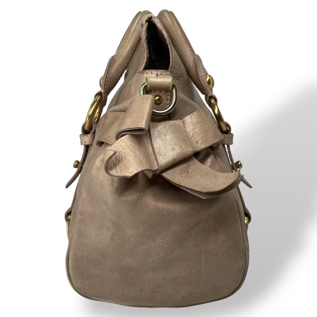 MIU MIU ハンドバッグ ベージュ レザー サイドリボン 金ロゴ ゴールドロゴ メタルロゴ ゴールド金具 ロゴプレート