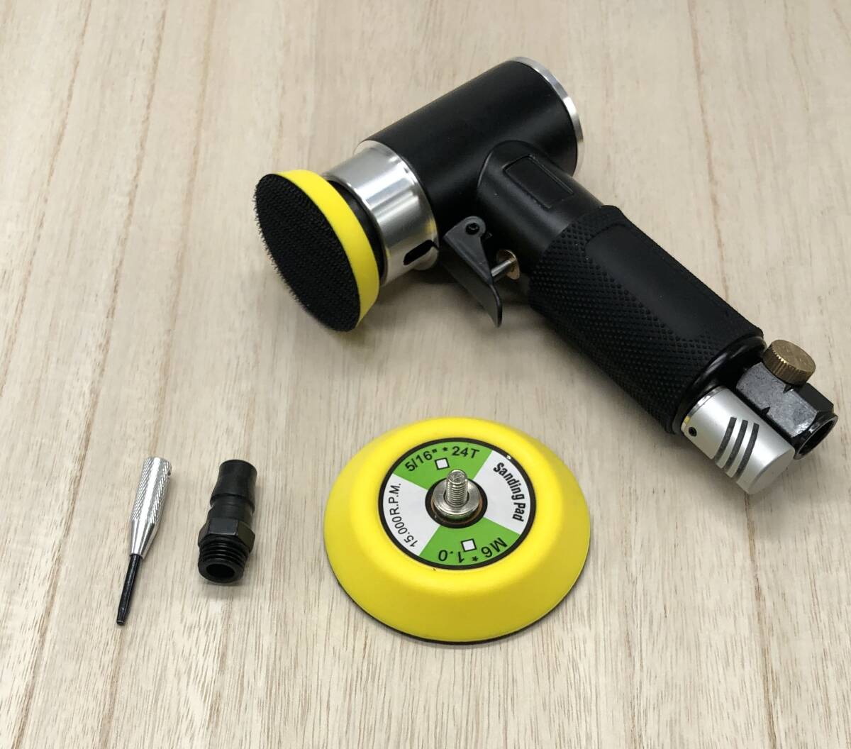 小型エアーポリッシャー☆ウールバフ9枚付☆マジックテープ式75mm &50mm