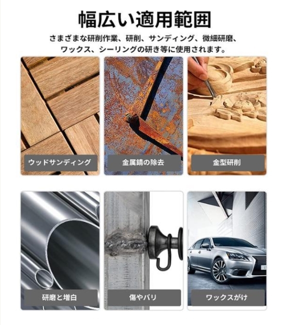 【適用性広い】洗車、人造石、家具、木製品、金属、研磨などに広く使用されています。