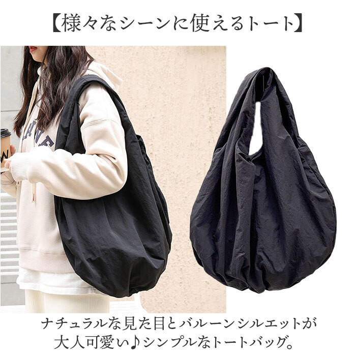 商品説明 | ・・【様々なシーンに使えるトート】 ・ナチュラルな見た目とバルーンシルエットが大人可愛い♪シンプルなトートバッグ。 ・【ナチュラルな見た目で大人可愛く】 ・ナチュラルカラーとクシュっとした生地感で甘すぎない大人可愛い仕上がり◎ ・【女性らしくトレンド感もあり】 ・コロンとしたシルエットが特徴的なバルーン型で、女性らしい丸みとトレンド感もあり♪ ・【ポーチやケースもザクザク入る】 ・仕切りのないシンプルな作りのメイン収納は、大きなポーチやケースもザクザク収納可能! ・【小物が迷子にならないポケット】 ・内装にオープンポケットを1つ配置。鍵など迷子になりがちな小物入れに便利。 ・【たくさん入って使い道色々】 ・通勤通学や、エコバッグ、マザーズバッグなどたっぷり入って様々シーンで使える。 ・【ゆとりのあるハンドル】 ・ハンドルは肩に掛けやすいゆとりのある作り。コートなどアウターを着ている時でも肩掛けOK ・【持ちやすい太めの作り】 ・さらにハンドルは太めの作りなので手に馴染んで持ちやすいのもGOOD。 ・【毎日使えるお手軽素材】 ・軽くて丈夫なナイロン生地で、デイリーで使えるのも嬉しいポイント。 ・【ポケット仕様】 ・メインルーム・・・オープンポケット×1 |