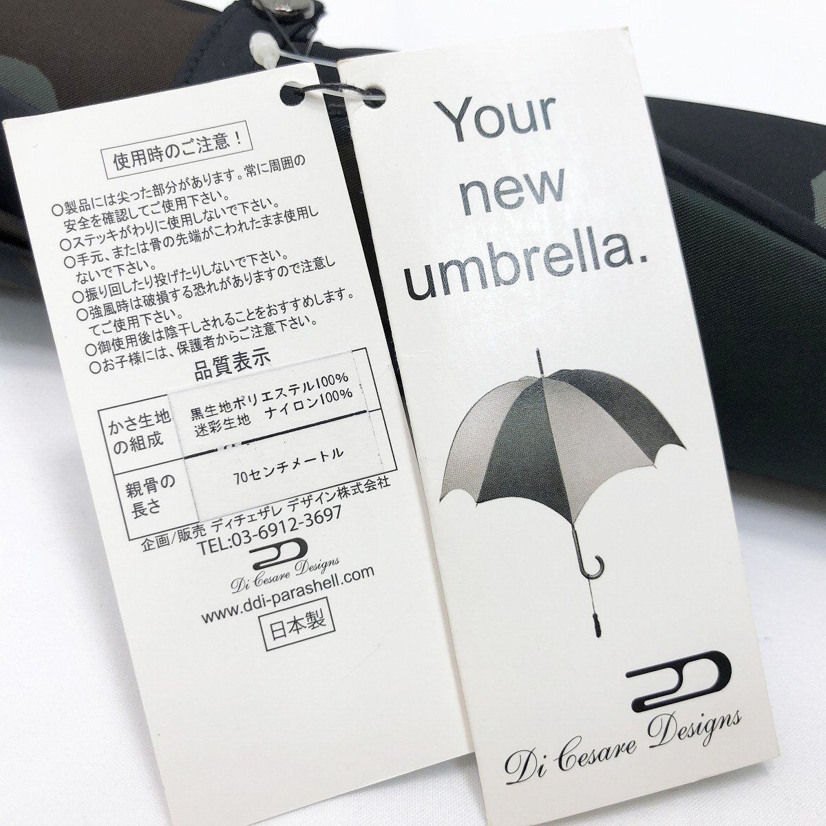 こちらはDiCesare Designs ディチェザレ デザイン 傘 GRANDE グランデ URBANCAMO カモフラージュ 迷彩×ブラック 男性用 雨傘です。 未使用品です。 大人の遊び心をくすぐるオン・オフつかえる雨傘 カナダ人デザイナー・ディチェザレ氏が描く芸術的なデザインを、 日本の傘職人が1本ずつハンドメイドした逸品。 傘の骨の長さを微妙に変えることで、かぼちゃのような凹凸を生みだしています。 「URBAN CAMO」はベースカラーと、カモフラージュ(迷彩)柄の生地が交互に配され、 見る角度により異なる印象を楽しめます。 遊び心と上品さを兼ね備えたデザインで、オフはもちろん、オフィシャルなシーンにもマッチします。 【コンディションについて】 未使用品です。 皆様のご入札をお待ちしております! 再良市場の他のお品物はこちらから!