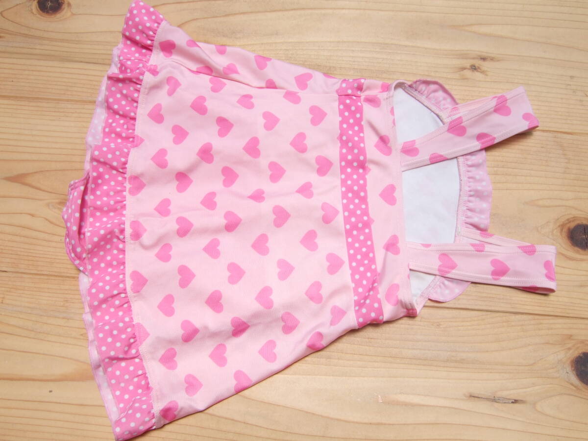 *美品!キッズ女の子ハート柄ピンクワンピース水着120センチ(14)*