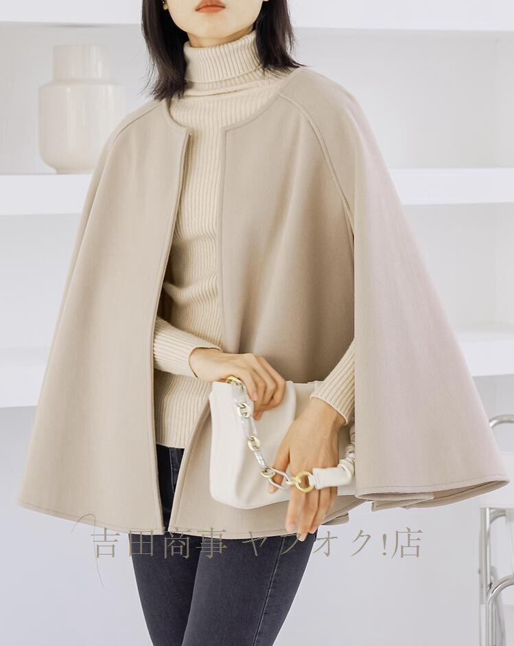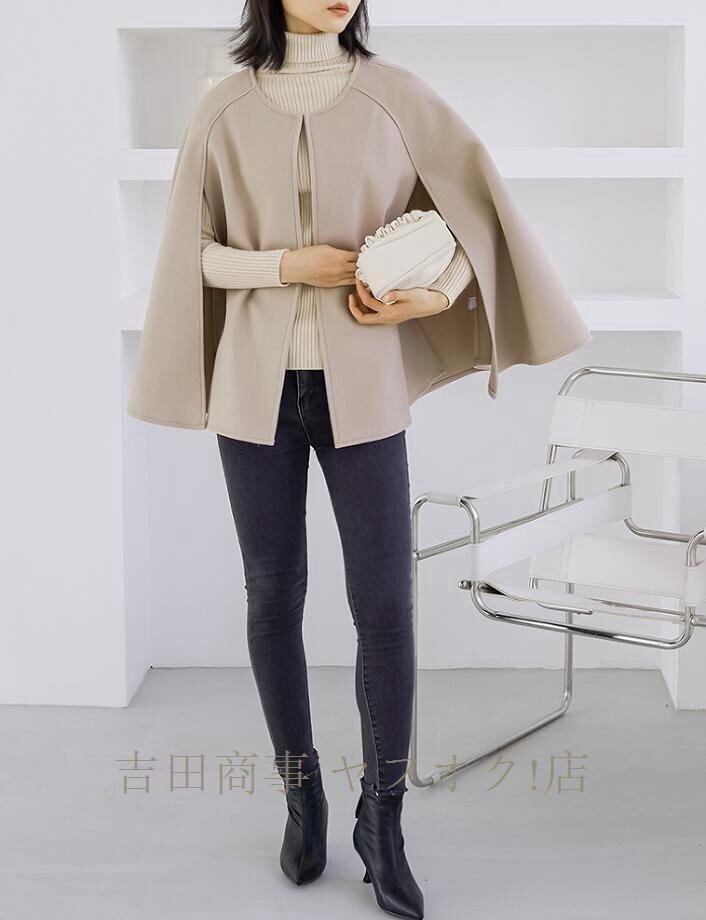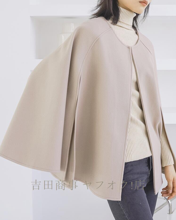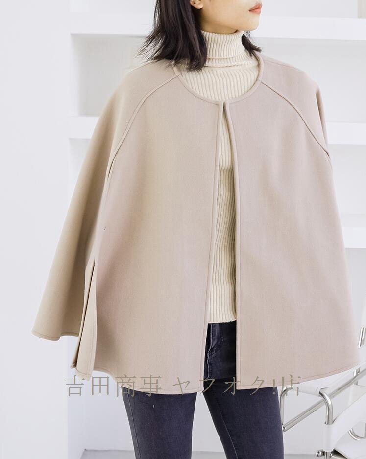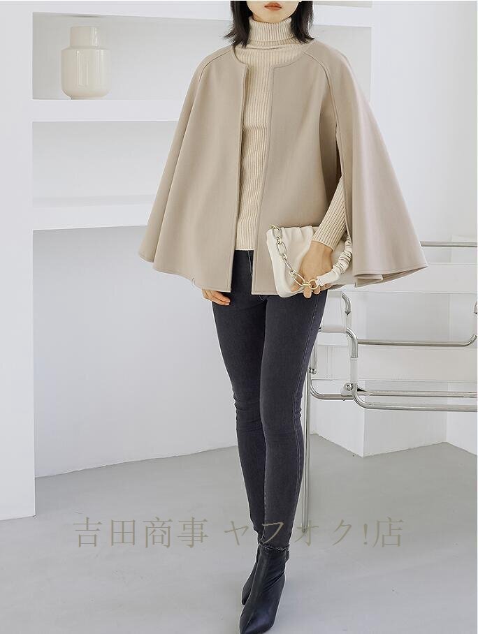 ☆新品 秋冬/ラシャコート レディースアウター 羽織り ポンチョコート マント ドルマン ケープ ジャケット 通勤 ショートコート 杏