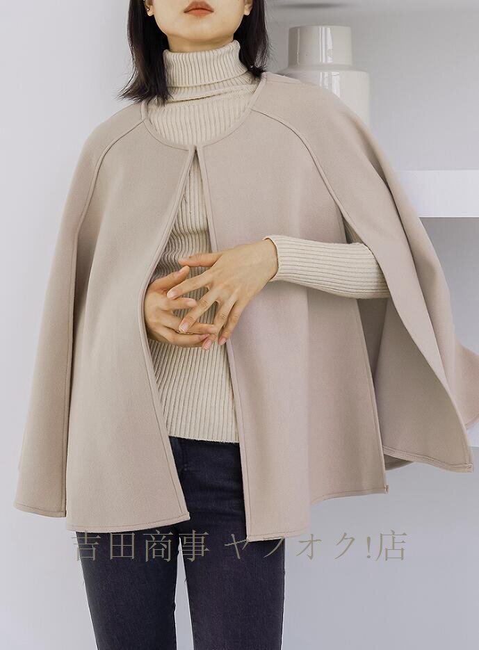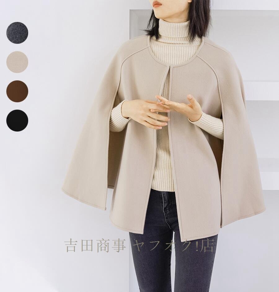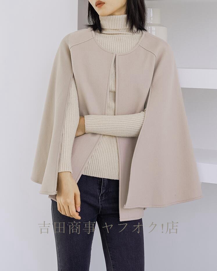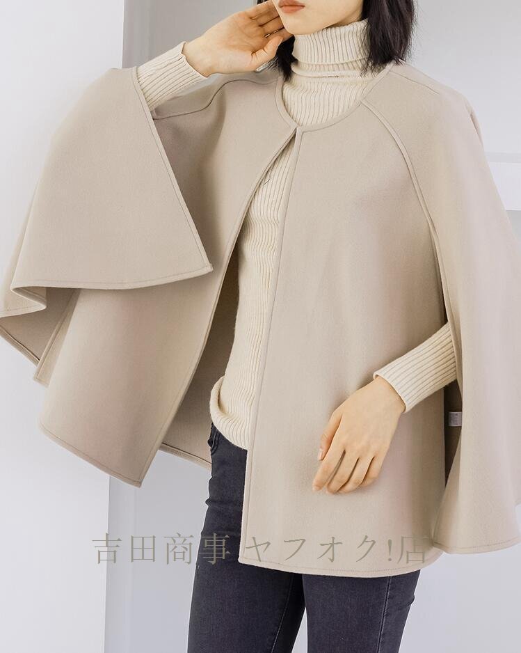 ☆新品 秋冬/ラシャコート レディースアウター 羽織り ポンチョコート マント ドルマン ケープ ジャケット 通勤 ショートコート 杏