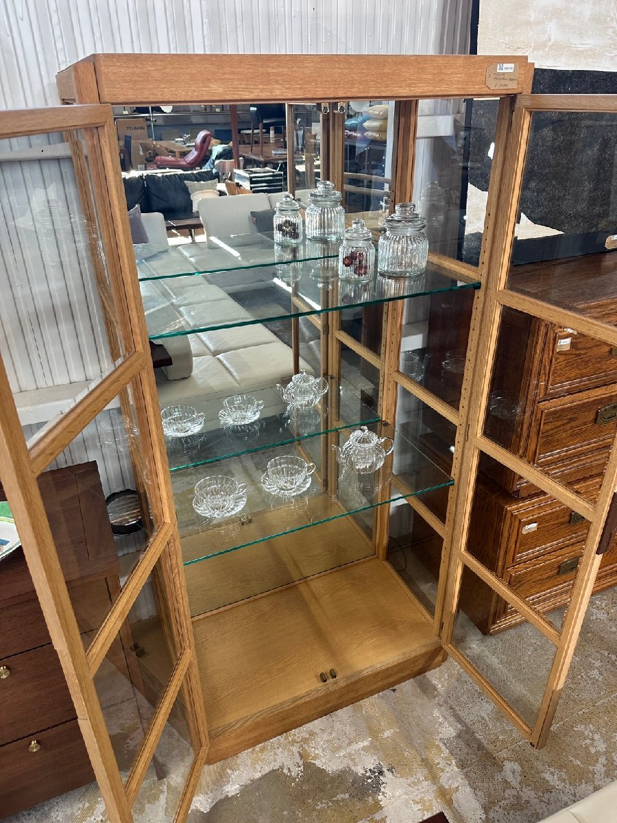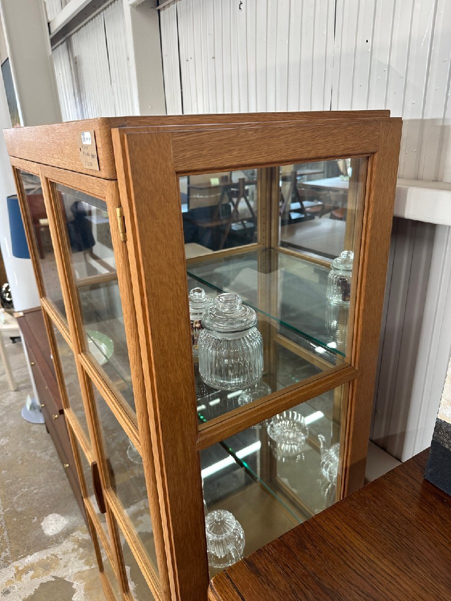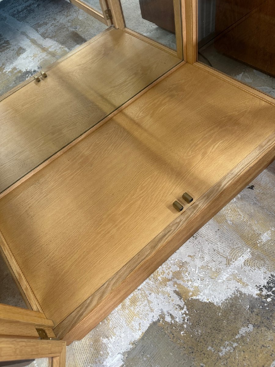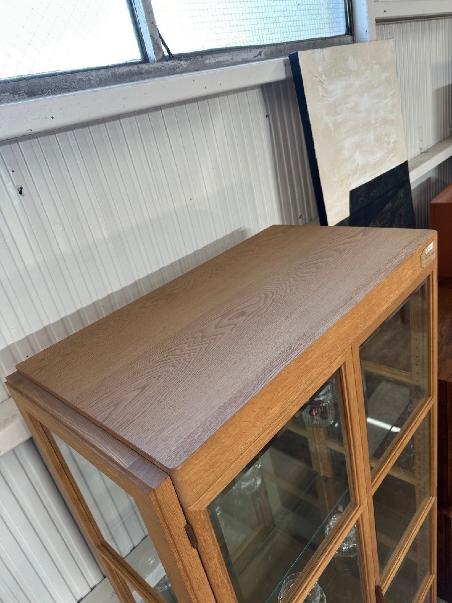 モデルルーム展示品 CONDEHOUSE カンディハウス 北海道楢無垢材 飾り棚 ミラーバックキャビネット 照明付き