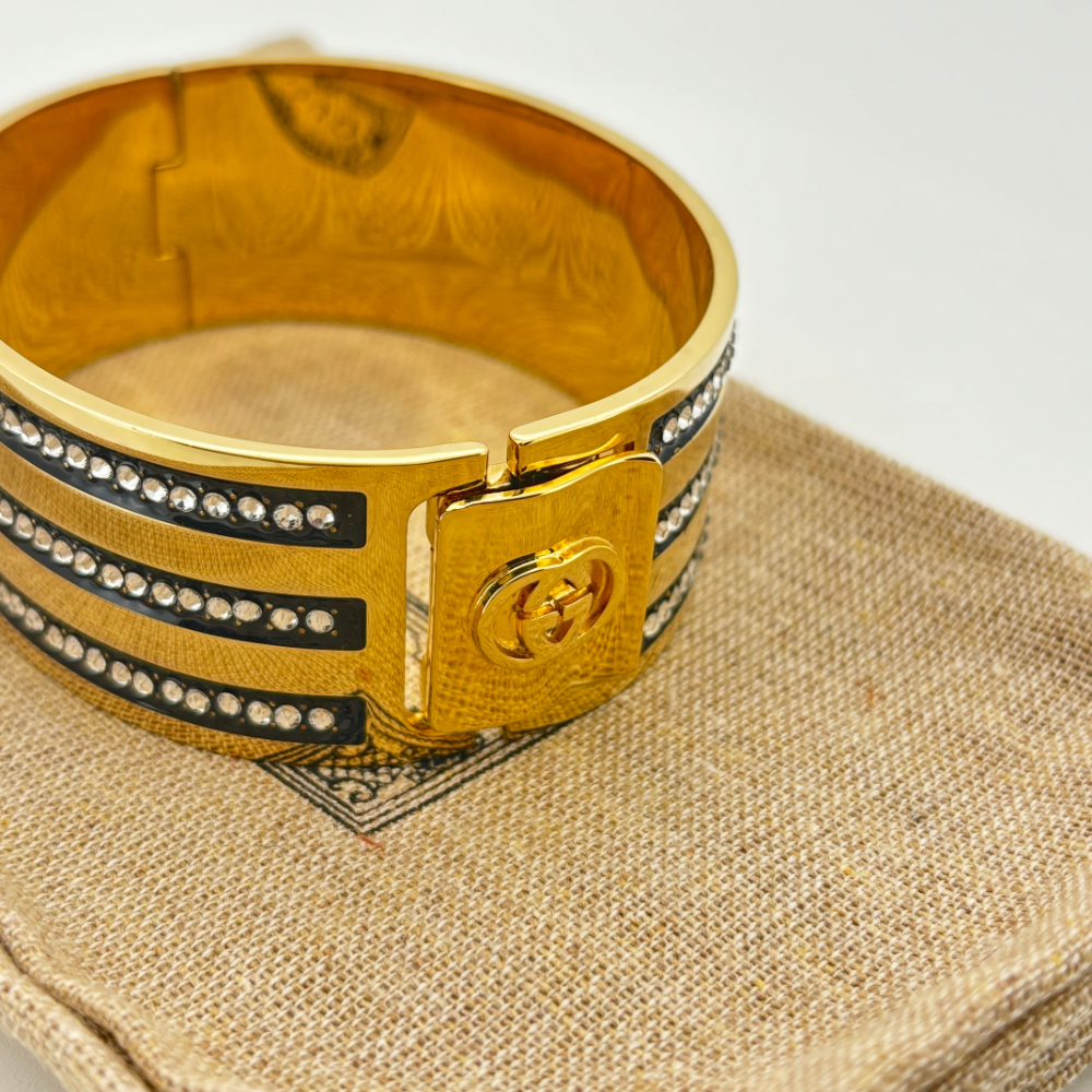 商品名:GUCCI ×adidas エナメル クリスタルカフ バングル ゴールド
