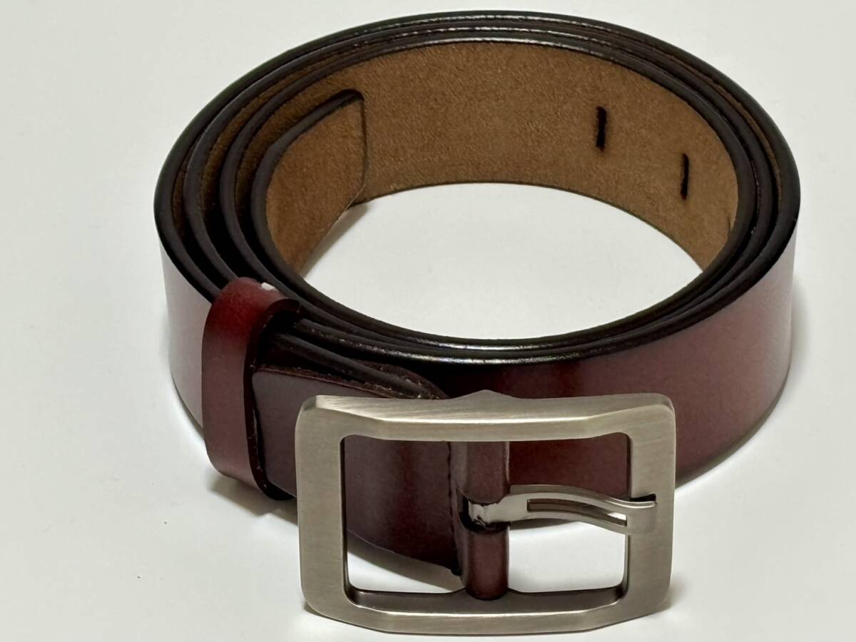 どんな服にも合わせやすい、シンプル、リーズナブルな牛革ベルト、ご自分へのご褒美やプレゼントとしてぜひご購入下さい!