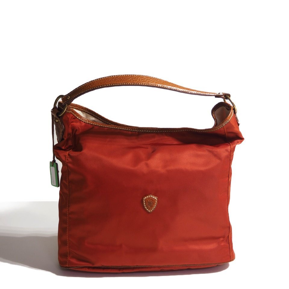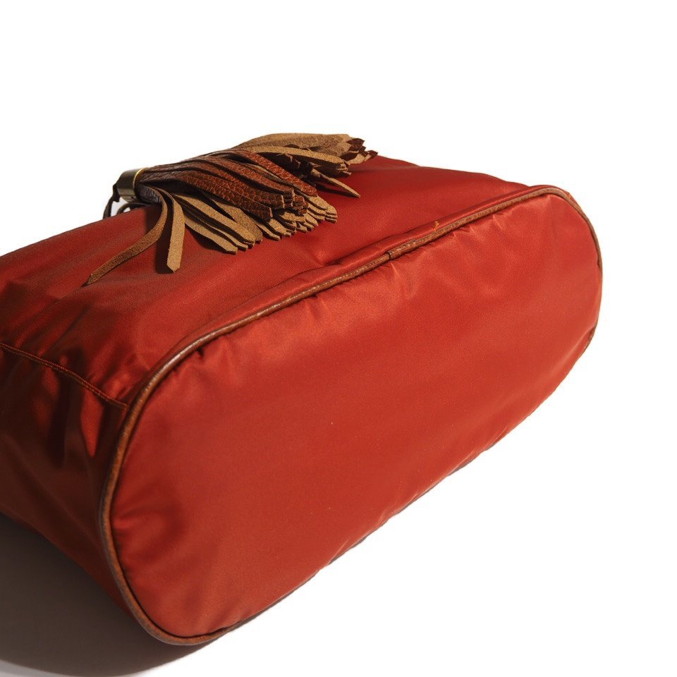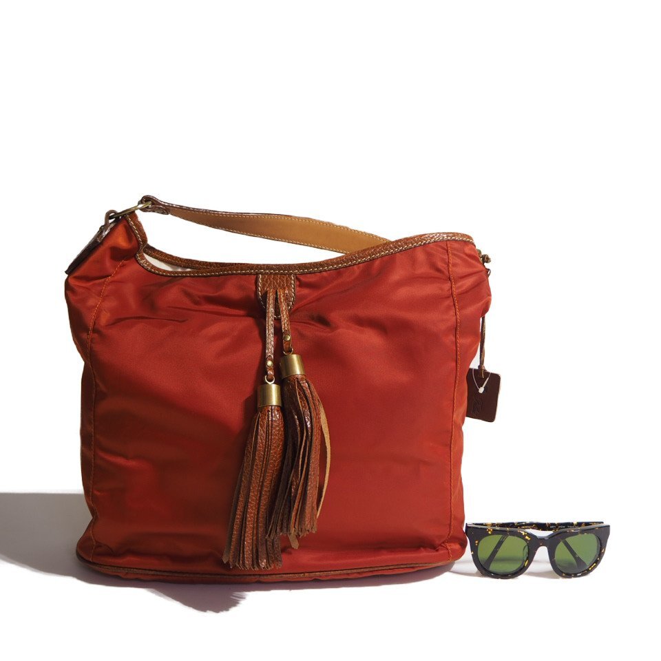 16-20 タッセル付き ナイロン×レザー ショルダーバッグ テラコッタ ブラウン