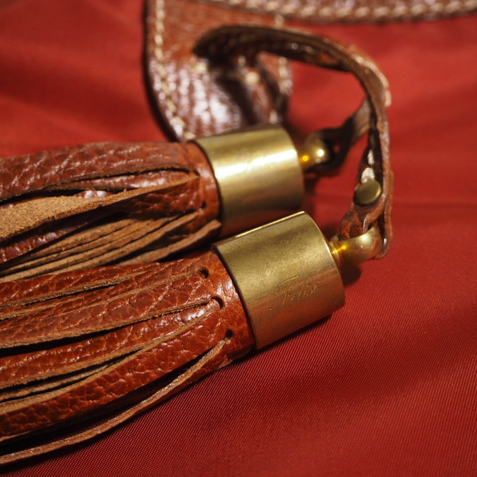 G7653z2 ■Felisi フェリージ■ 16-20 タッセル付き ナイロン × レザー ショルダーバッグ テラコッタ ブラウン / メンズ レザーコンビ