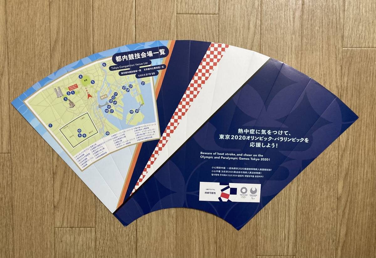 東京オリンピック パラリンピック 応援うちわ 扇子? ボール紙に折り目がついています 大きさ高さ約26.5cm 横54.5cm(平置き1番長い箇所)