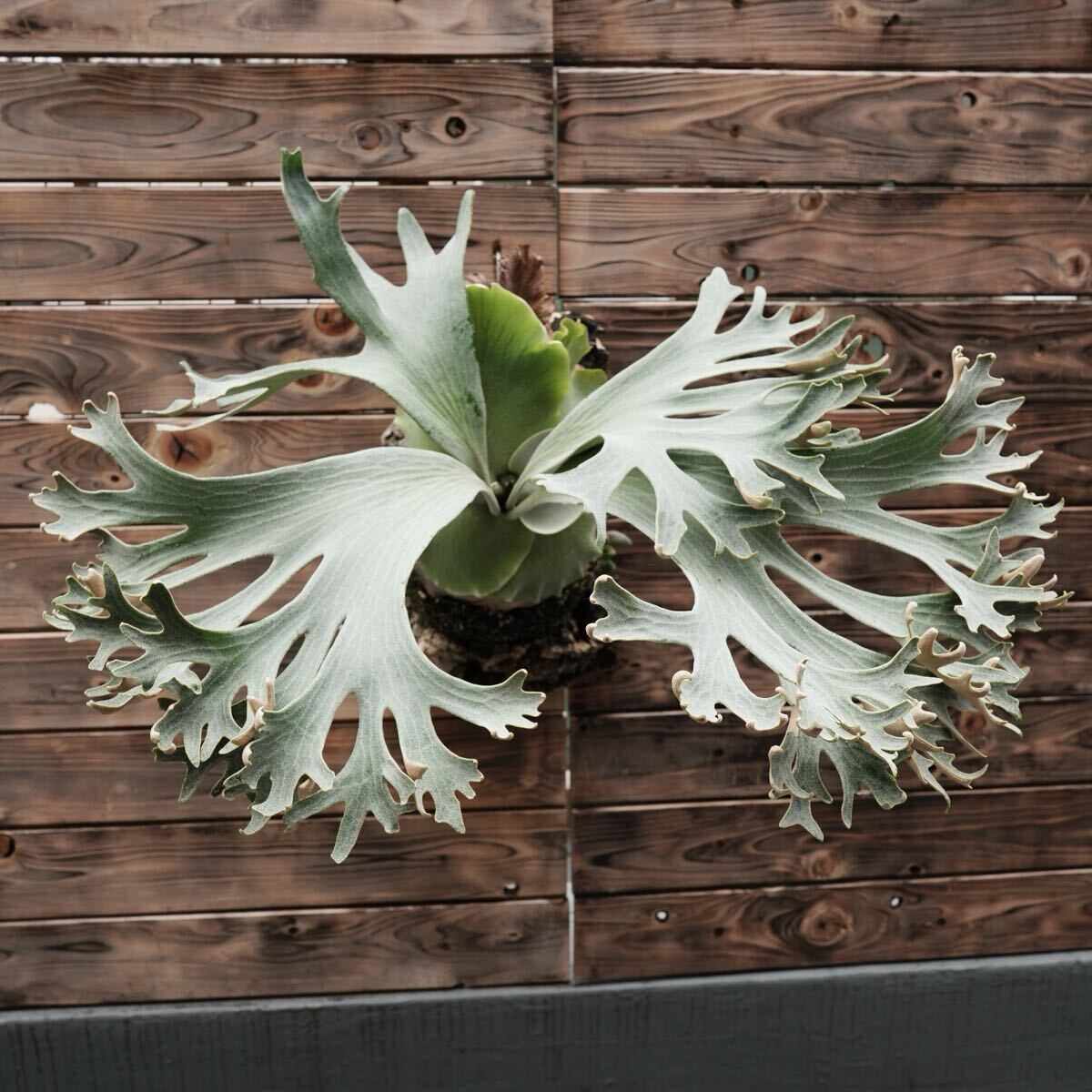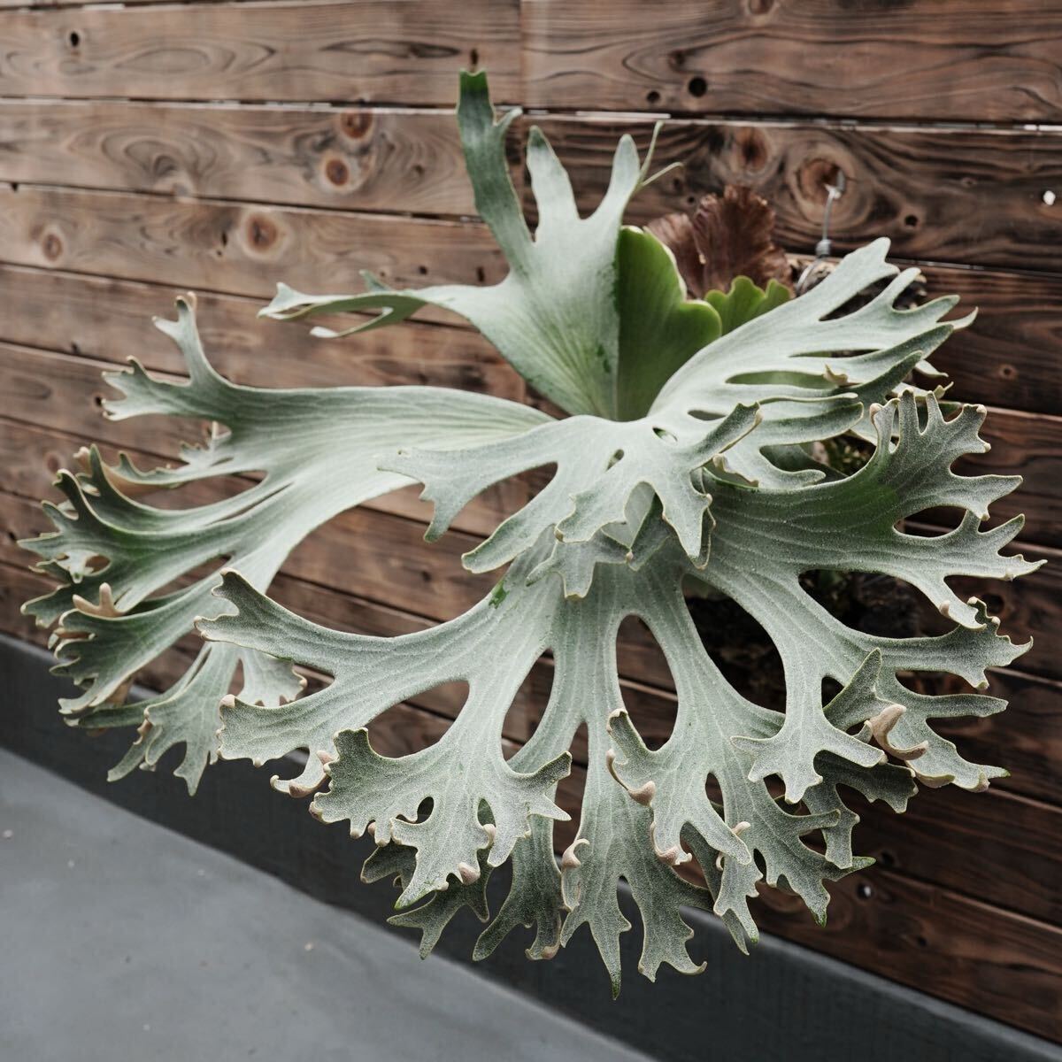 真っ白な胞子葉が魅力的な株です。