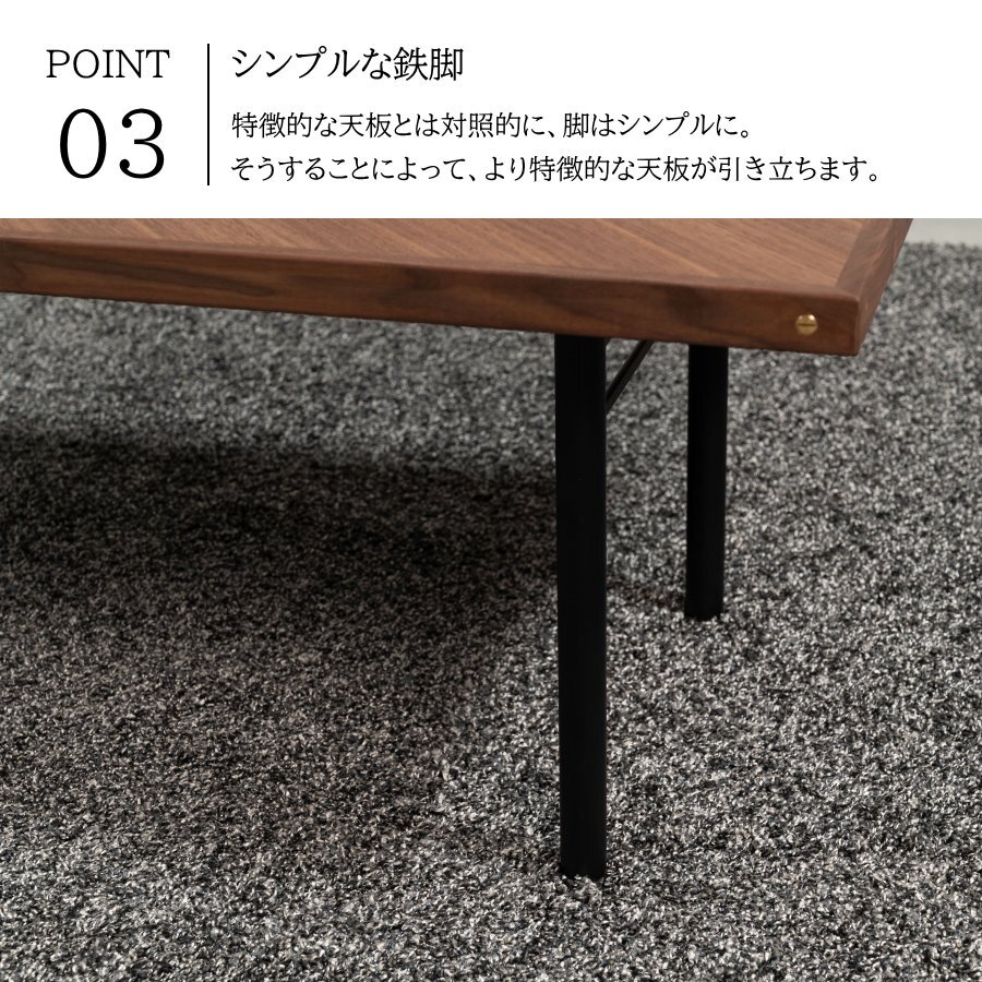 | ◆ 仕様 | 天然木化粧繊維板(ウォールナット)/天然木(ウォールナット)/ウレタン塗装/スチール(粉体塗装) |