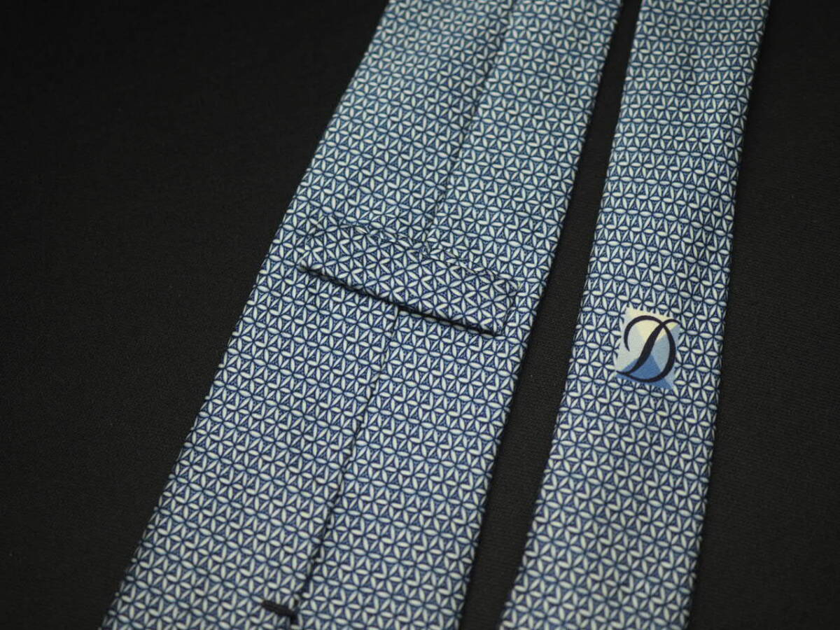 美品【S.T.Dupont デュポン】 F1598 ネイビーホワイト系 SILK ブランド ネクタイ 古着 良品