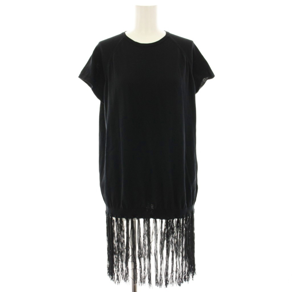 アメリヴィンテージ Ameri VINTAGE ニット カットソー チュニック フリンジ 半袖 黒 ブラック 0291130630 /HN レディース