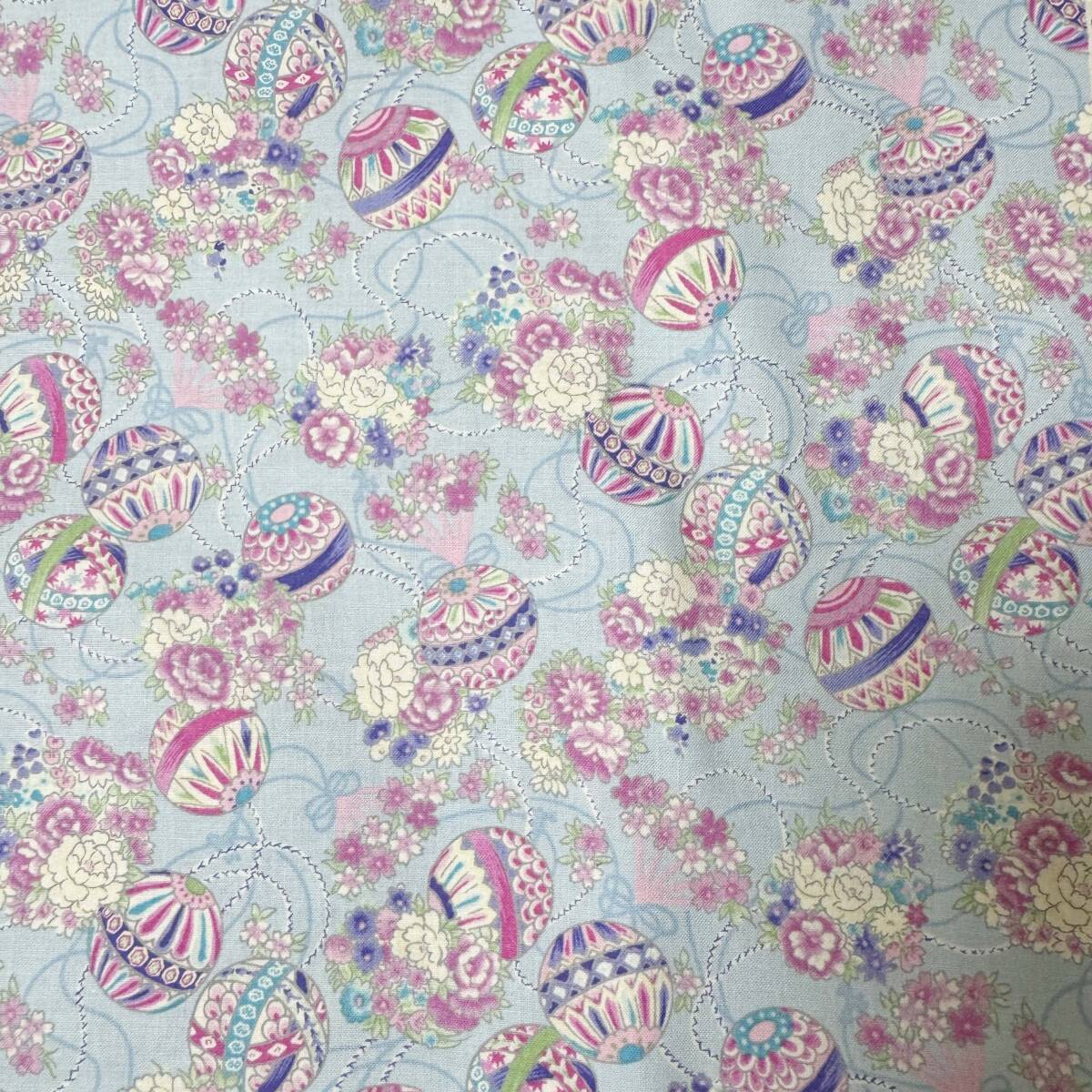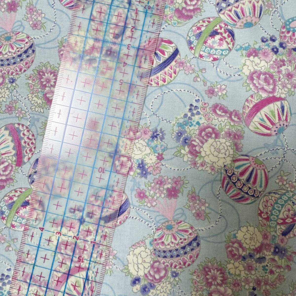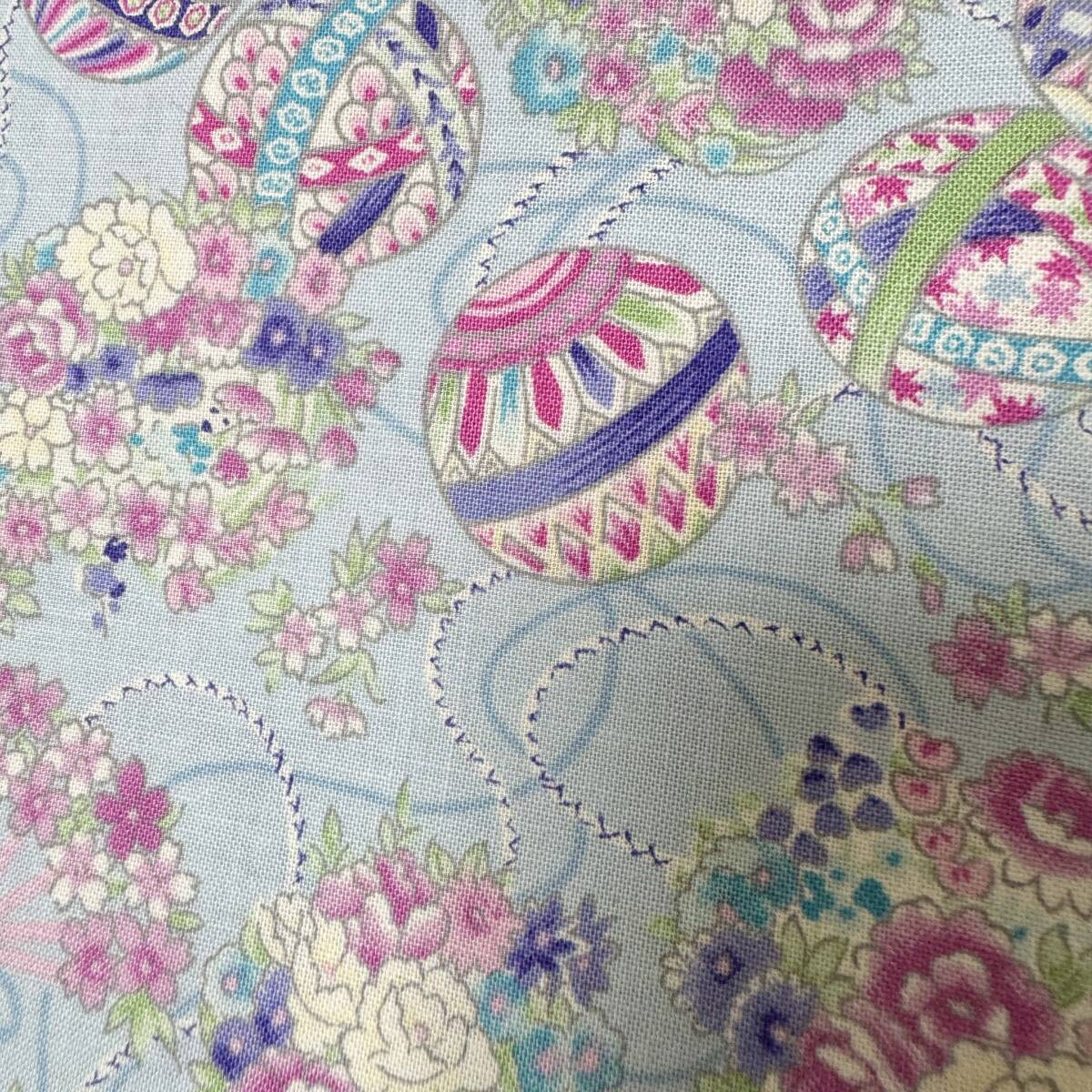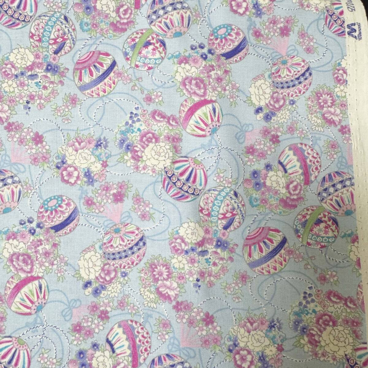 【特価】和モダン調★水色地に手毬と花柄★綿シーチング生地1m布はぎれ★和柄★和風