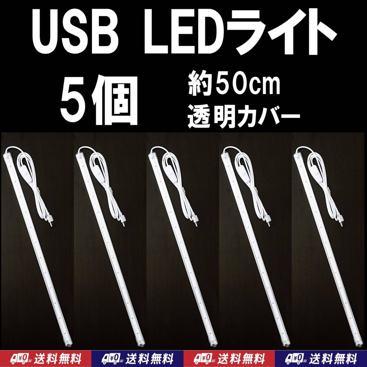 【送料込】USB LED バーライト 約50cm(LED48個) 5個 透明カバー 金魚・メダカ・シュリンプ水槽に 停電時の非常用やキャンプの照明に