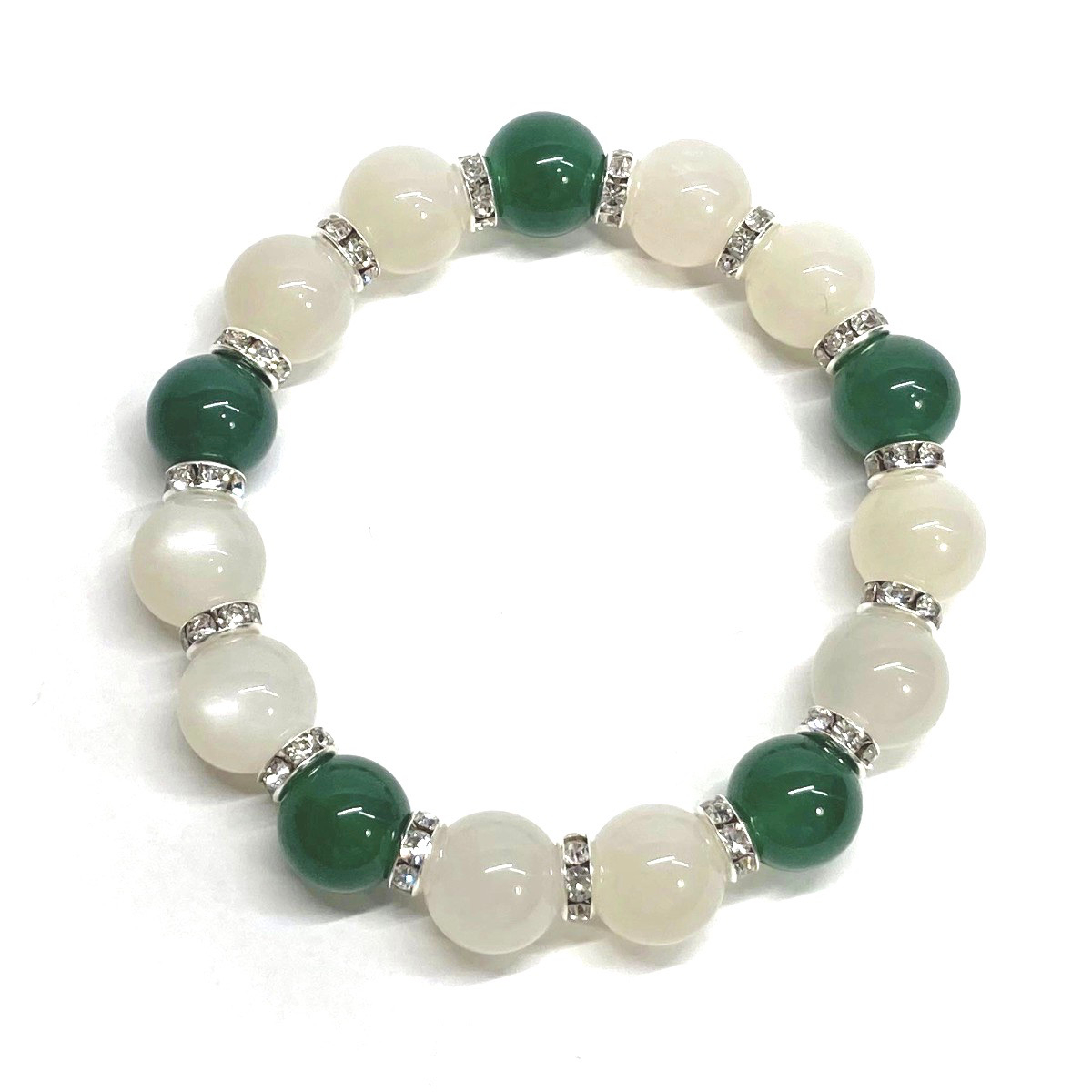 ムーンストーン&緑瑪瑙 パワーストーン ブレスレット 天然石ブレス (シルバー) 12mm 幸運 開運 メンズ 男性♪