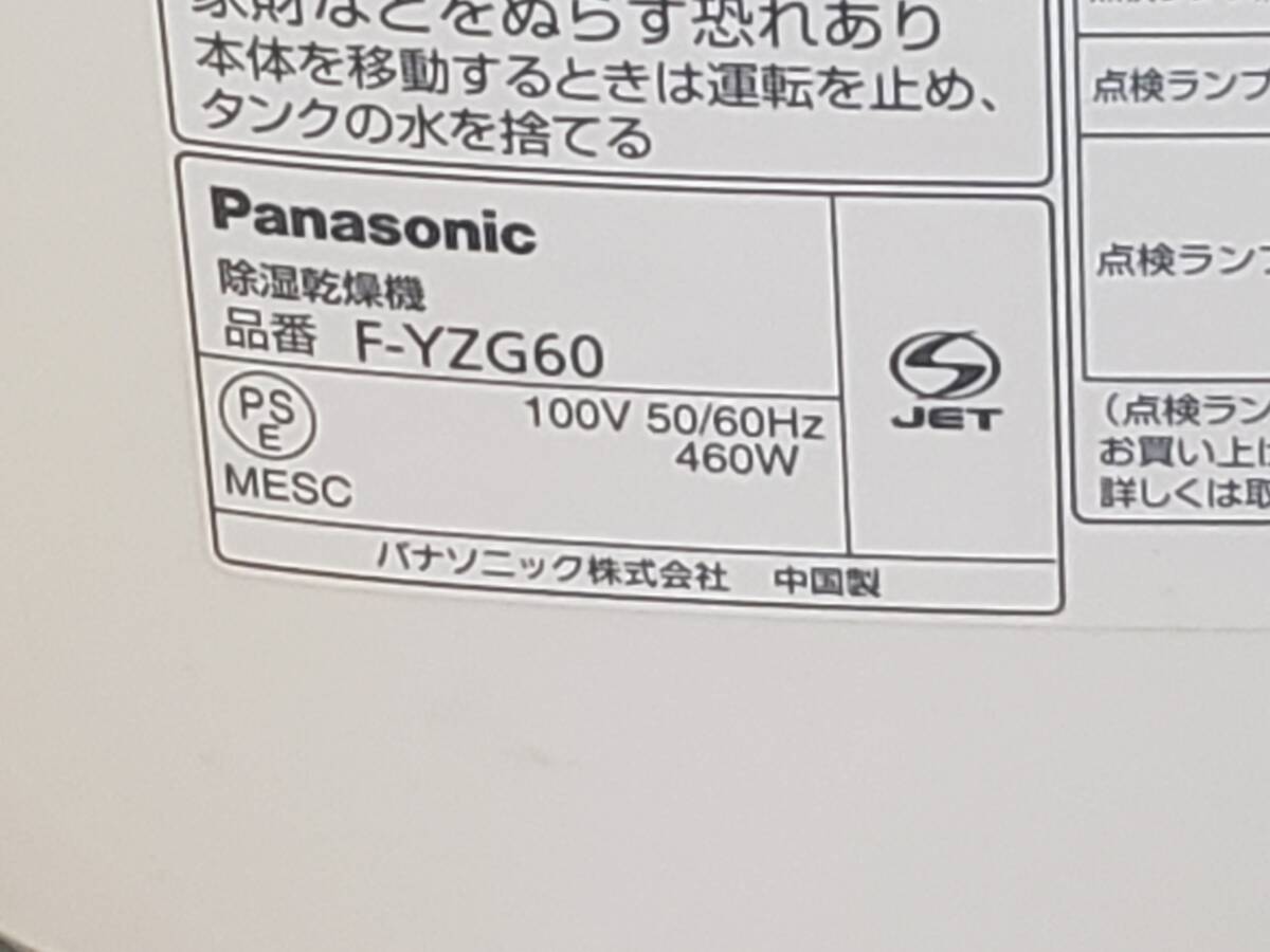 Q6977 通電OK/現状渡し☆売切☆Panasonic F-YZG60 除湿乾燥機 2012年製