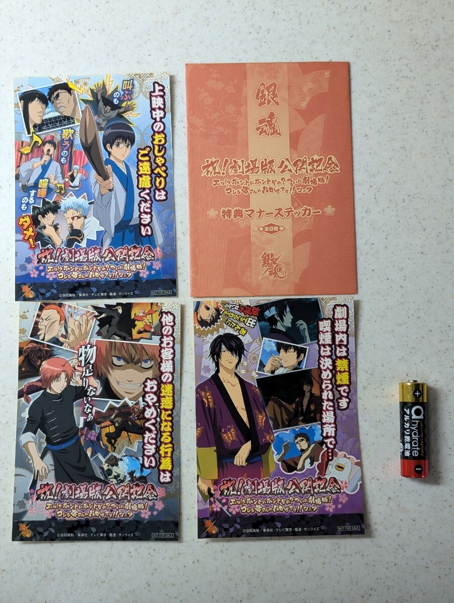 【185】銀魂 2010年 劇場版 銀魂 紅桜篇 公開記念 劇場マナー ステッカー 3枚 志村新八 高杉晋助 神威