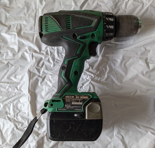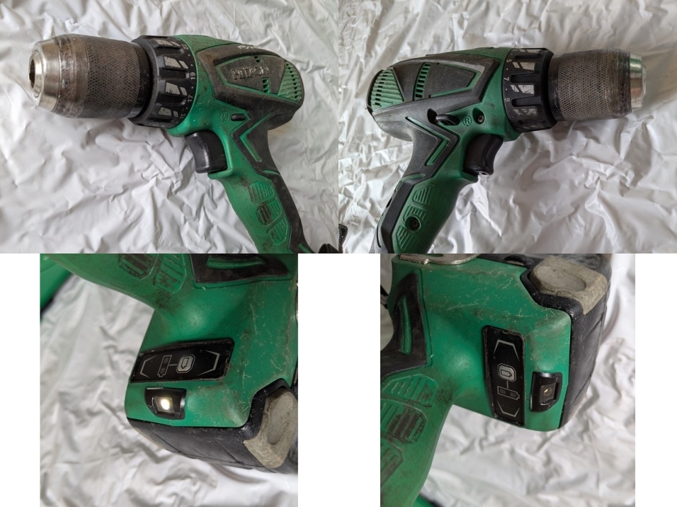 ・日立工機 18V 13mm コードレス振動ドライバドリル DV 18DBEL 本体(18V)+バッテリー2個(14.4V)+充電器+ケース 中古・現状