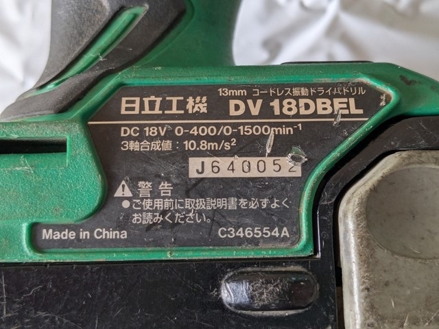日立工機 18V 13mm コードレス振動ドライバドリル DV 18DBEL 本体(18V)+バッテリー2個(14.4V)+充電器+ケース 中古・現状 № 8594