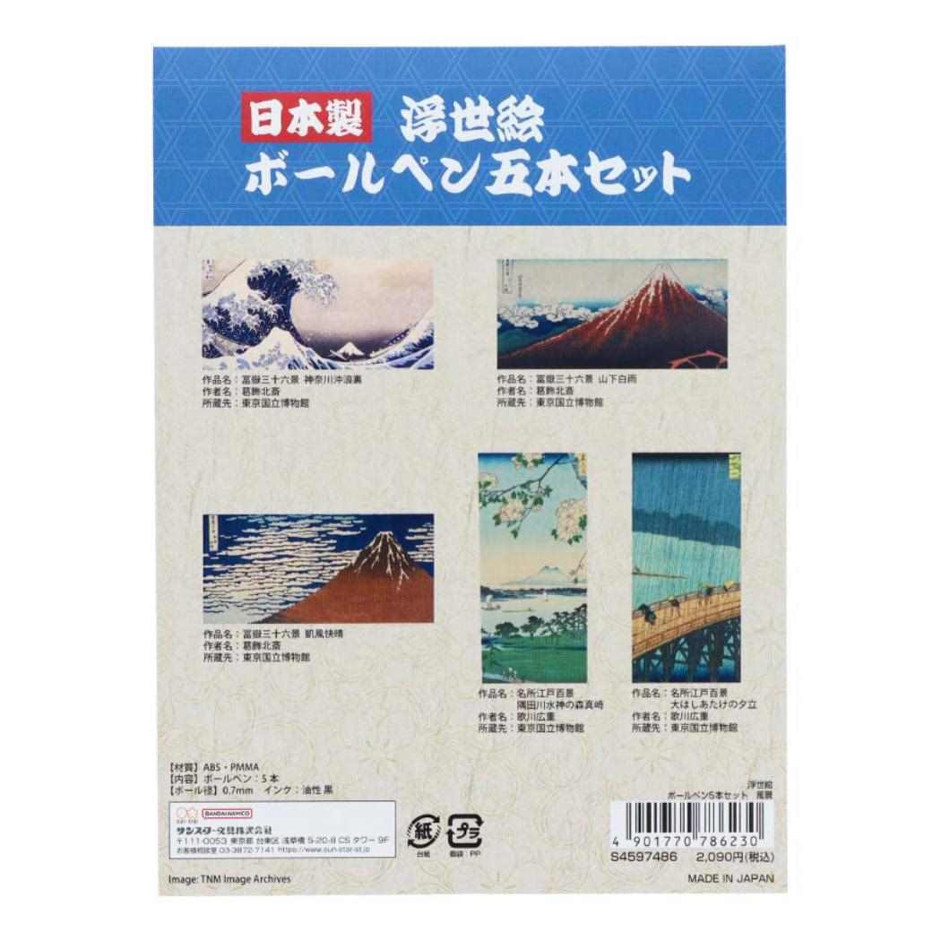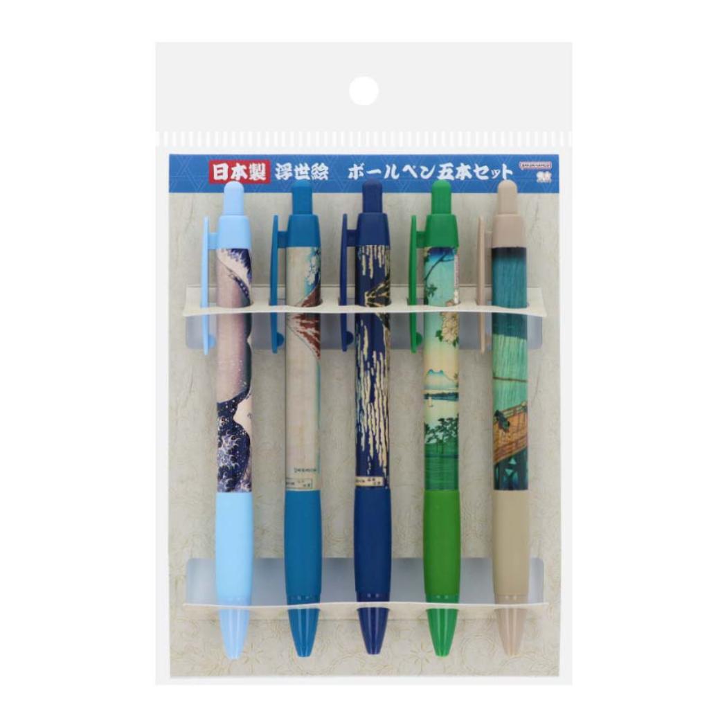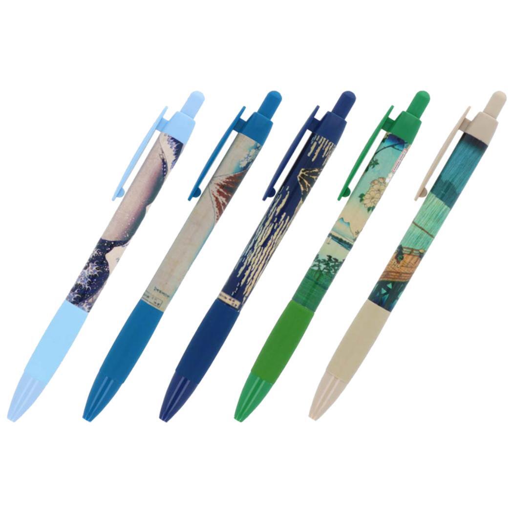 葛飾北斎 歌川広重 ボールペン 0.7ボールペン5本セット 浮世絵風景 サンスター文具 和風 インバウンド 文具 グッズ