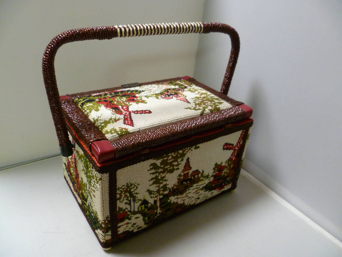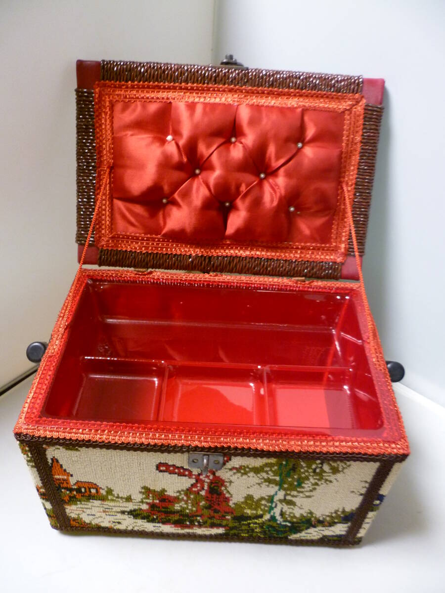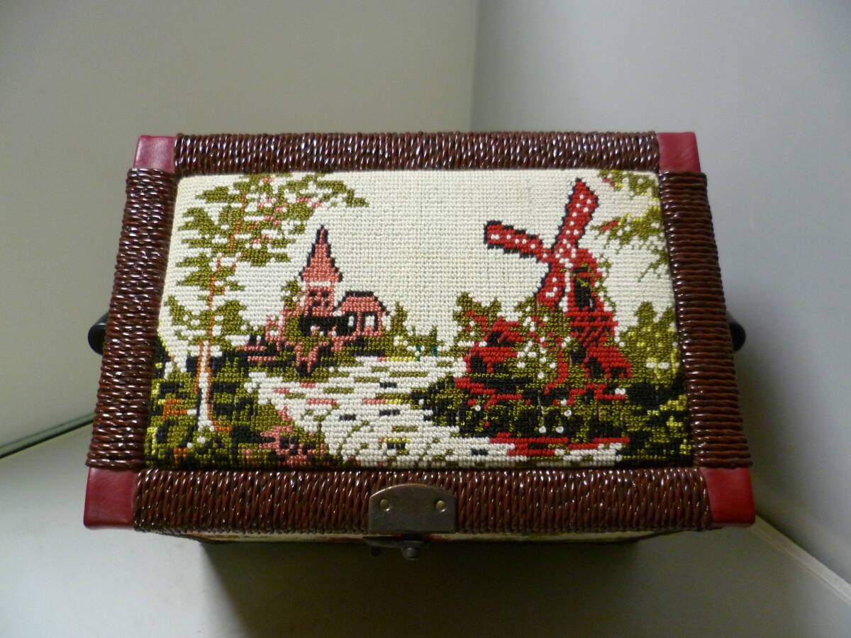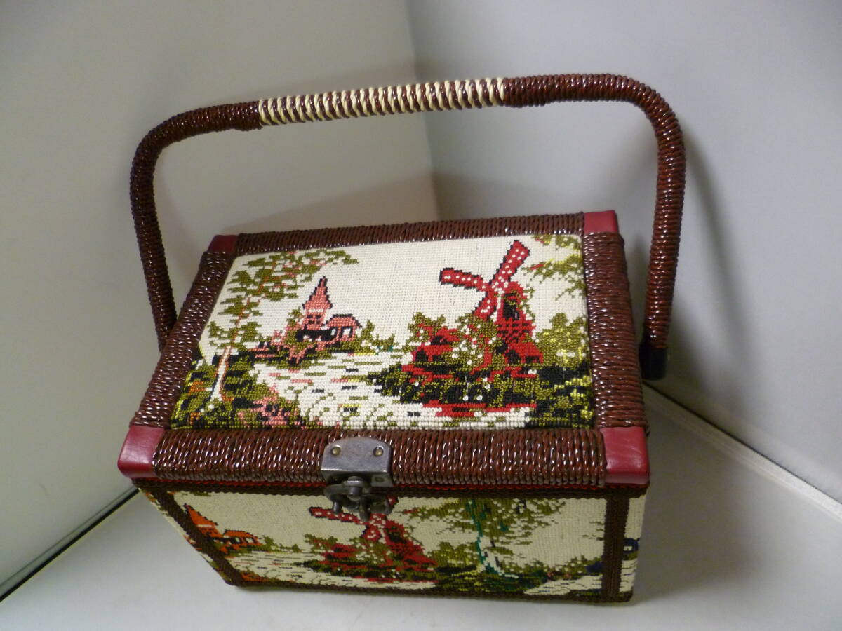 昭和レトロ 5面刺繍柄(風車柄) ソーイングボックス 裁縫箱 1ヶ