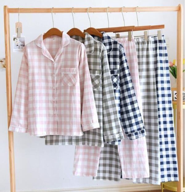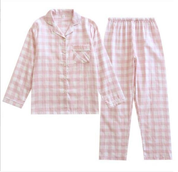 人気推薦 / メンズパジャマ 長袖 ダブルガーゼ前開き上下セットルームウェア部屋着 プレゼント紳士男性チェック柄 パジャマ / ピンク
