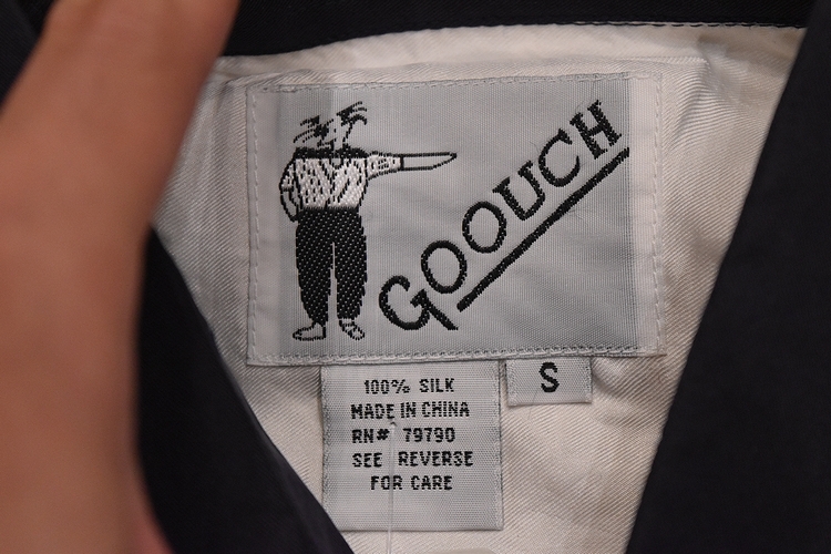 1990年代頃のGOOUCHオールシルクシャツ・デッドストックです。 GOOUCHはイギリス人のフォトグラファーAlan・Goouchが立ち上げたブランドになります。