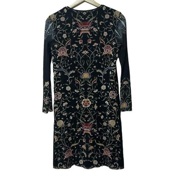 ヴィヴィアンタム VIVIENNE TAM サイズ0 XS - 黒×ダークグリーン×マルチ レディース Vネック/長袖/ひざ丈/花柄 ワンピース