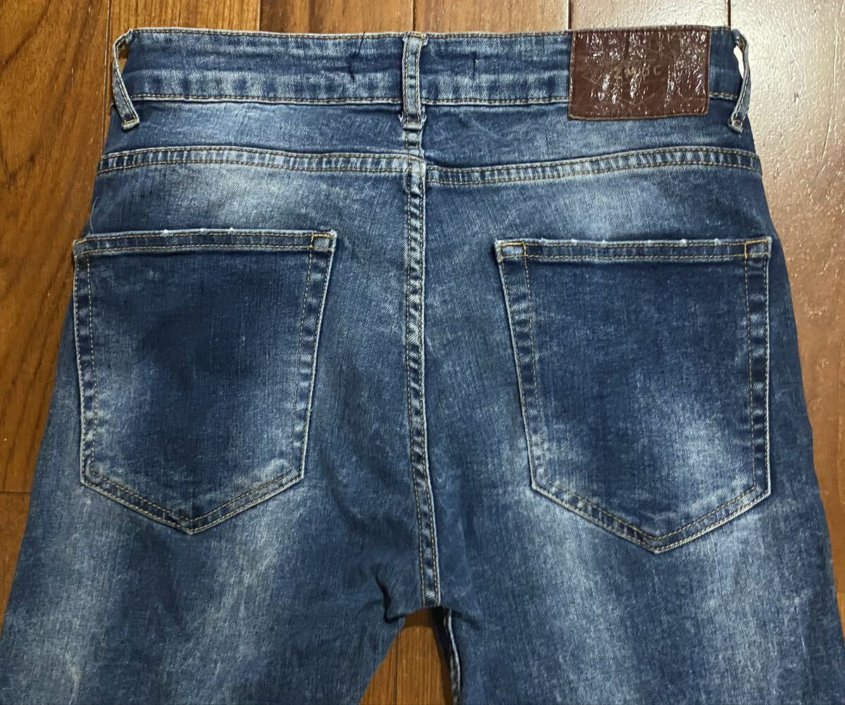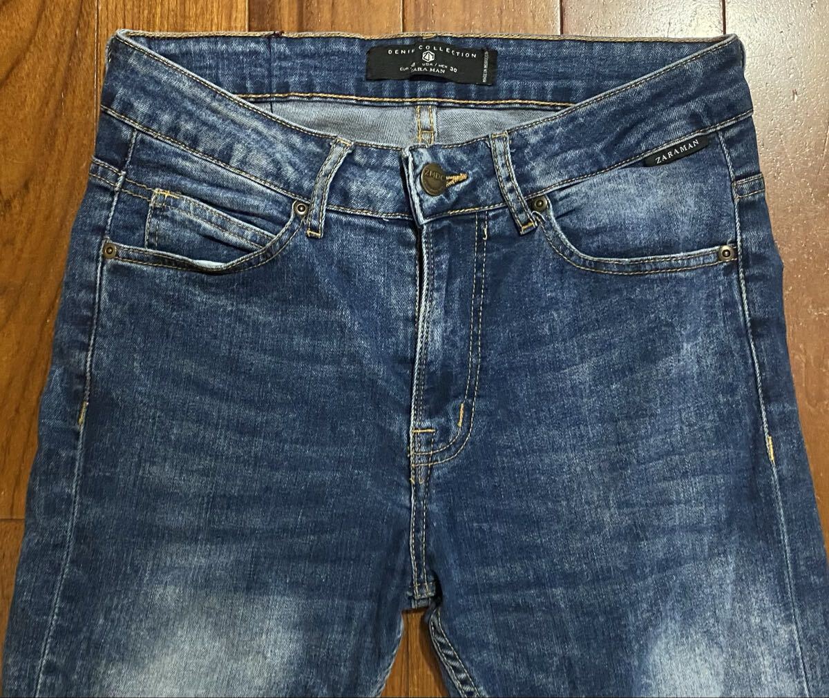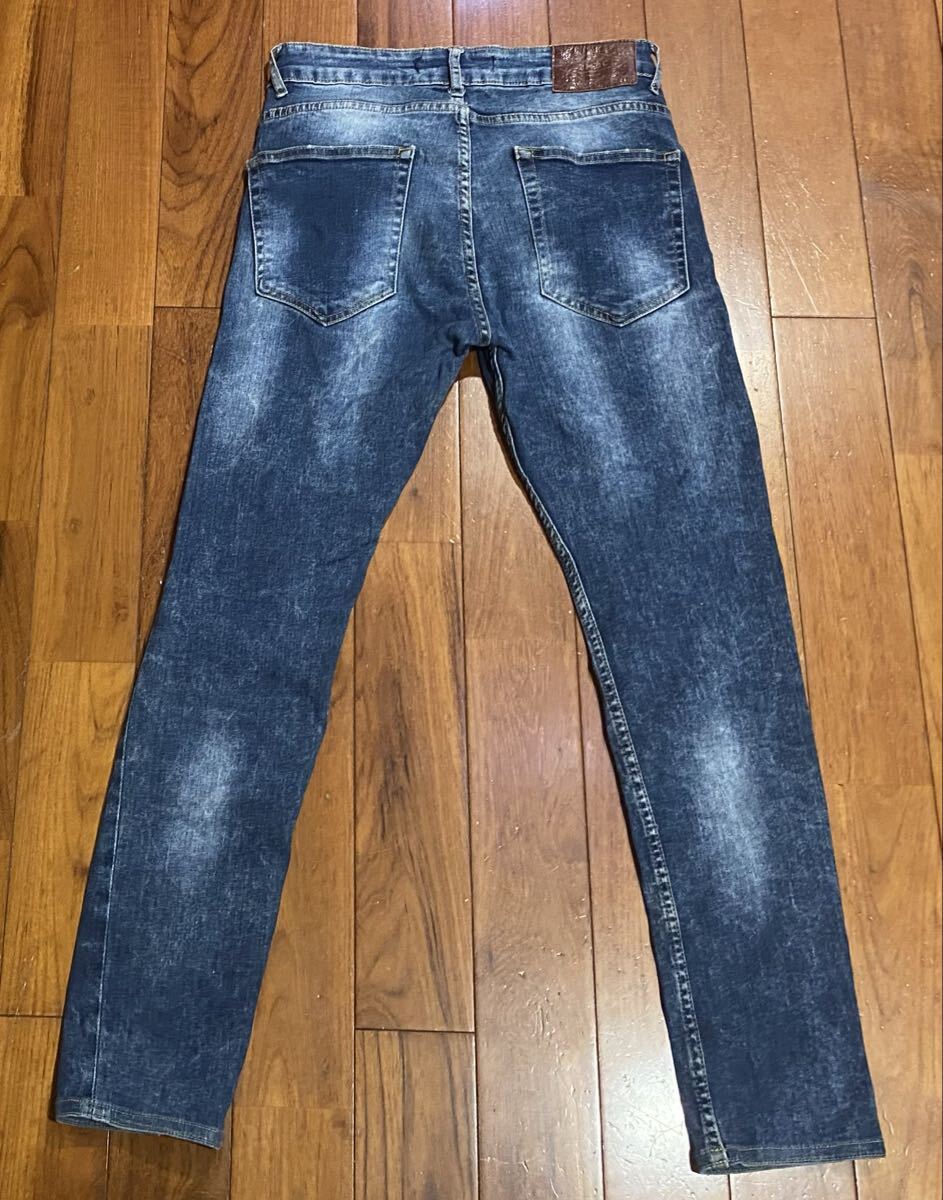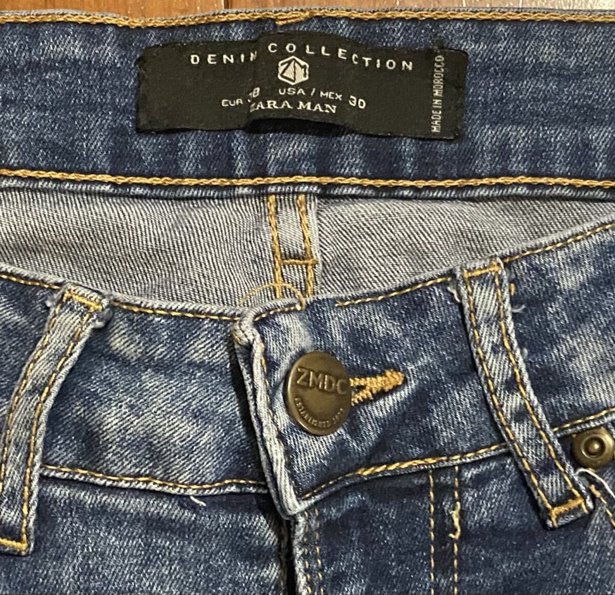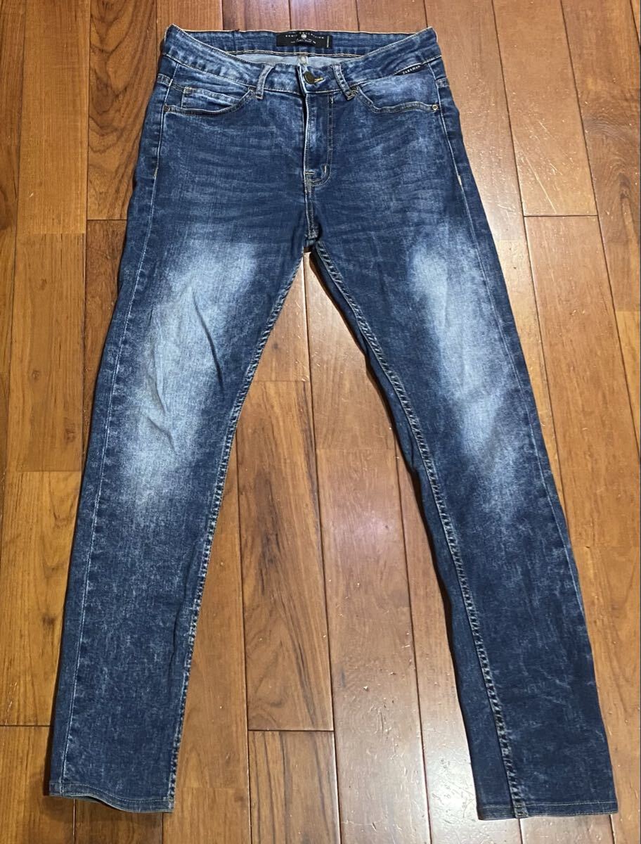 ザラ・マンのストレッチスキニーデニム(ジーンズ)です。色はインディゴブルーです。USEDで内側の商品表記タグ切ってますが状態は良いです(10段階中8程度)。生地はストレッチ入りです。紙パッチ、ジッパーフライです。正規品です(モロッコ製)。サイズはW30でウエストは重ねずに平置きで約73cm、ヒップ約88cm、股上約25cm、股下約72cm、股下15cmのふともも部分約41cm、裾まわり約28cm、重量約450gです。発送はゆうパケットポストになります。