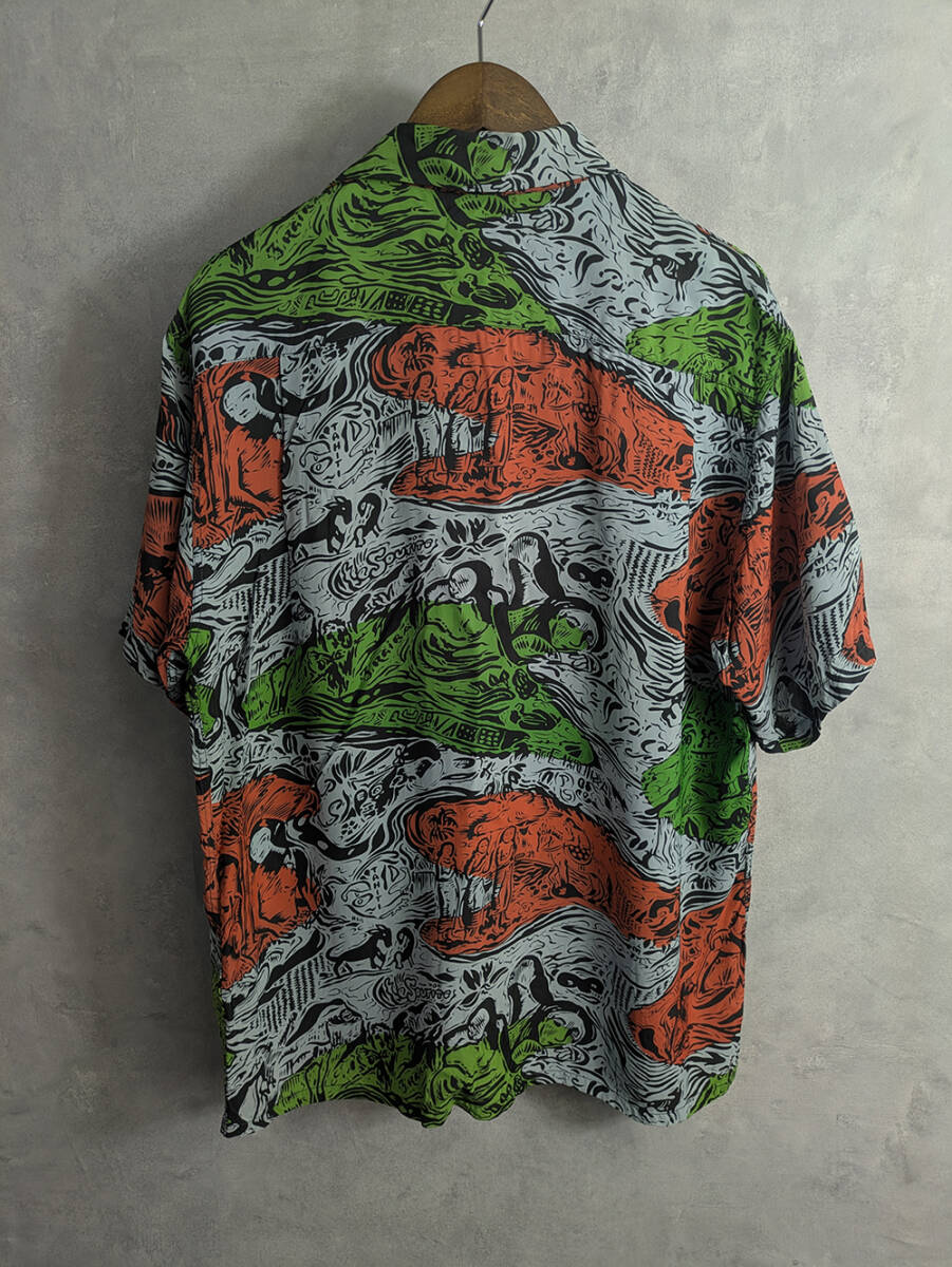 SUN SURF GAUGUIN WOODCUT MYSTIC 別注 EXCLUSIVE SPECIAL EDITION 美品 サイズ表記 M およそのサイズ 肩幅(約48m)袖丈(約24.5cm)身幅(約58cm)着丈(約70cm) 数回着程度の非常に程度の良い1着です。 ダメージや色抜け等はありません。 ゴーギャンの有名なデザインの復刻。 オリジナルは着るのも価格的にも手が出ませんが サラッと着用できる現実的な価格です。 |
