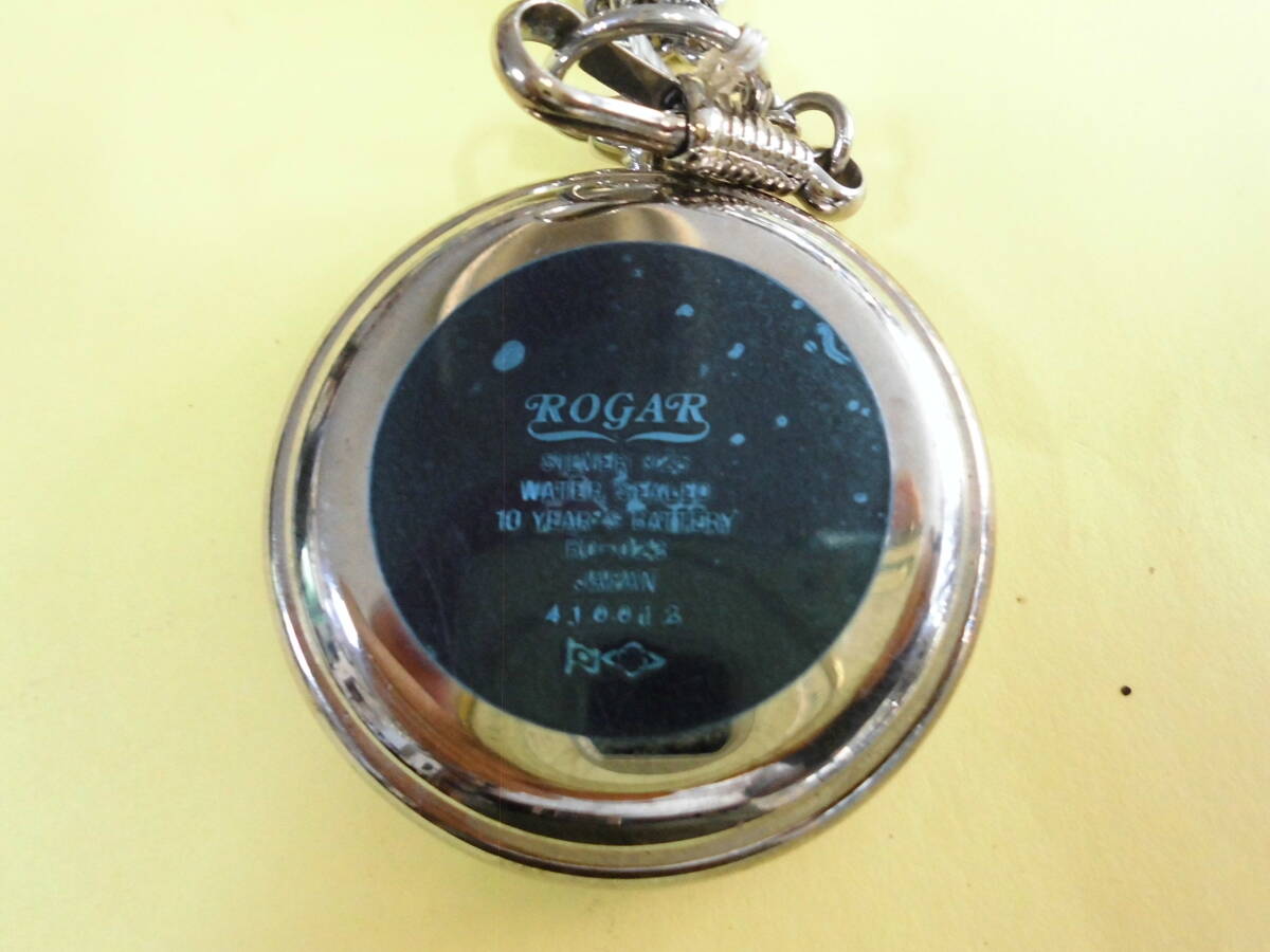 ロガール懐中時計(ポケットウオッチ)銀無垢ケースRO-23MR日本製 10年電池付