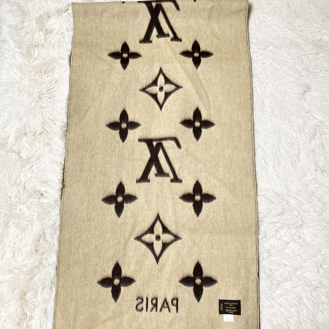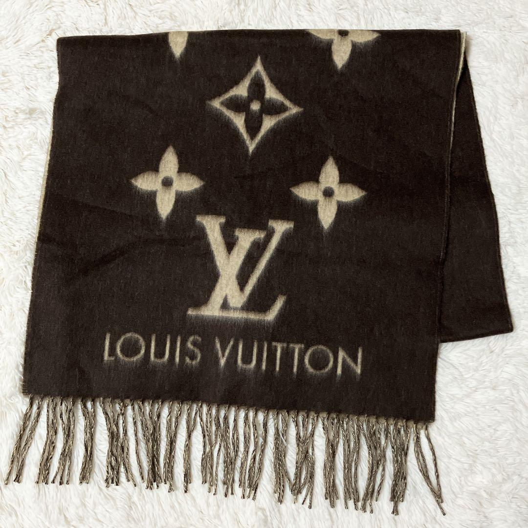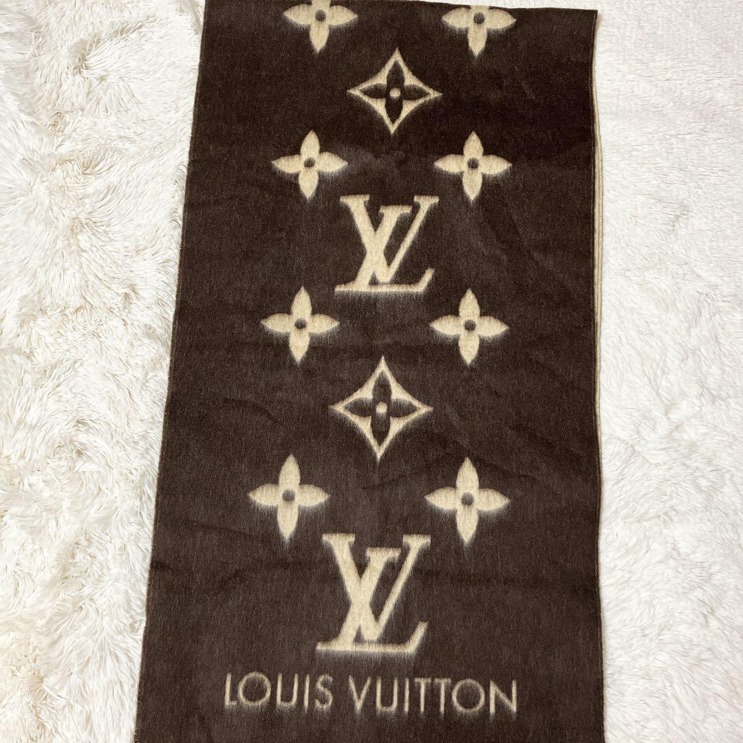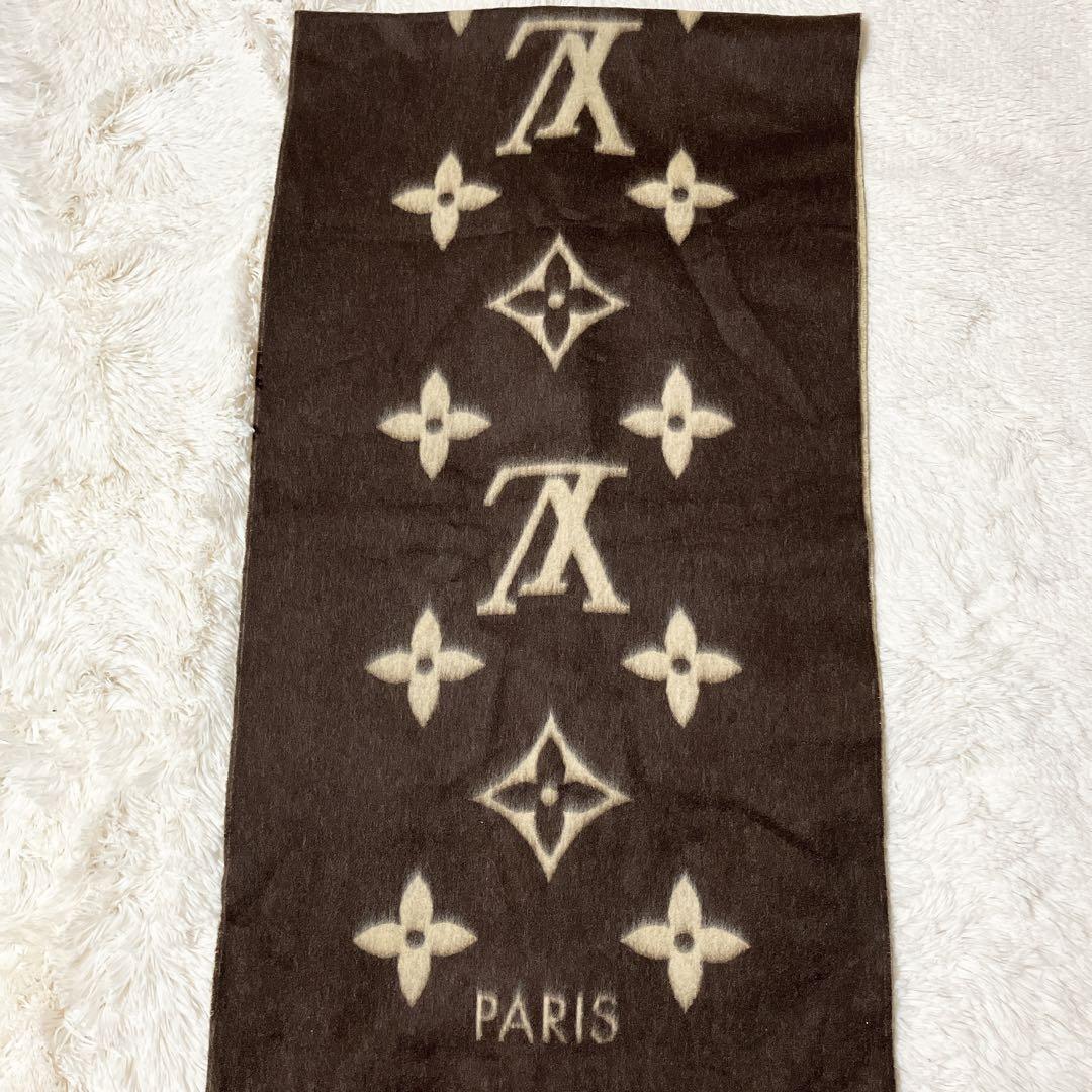 ヴィトン Vuitton モノグラム カシミヤ マフラー ブラウン MB28 メンズ レディース レイキャビック 茶