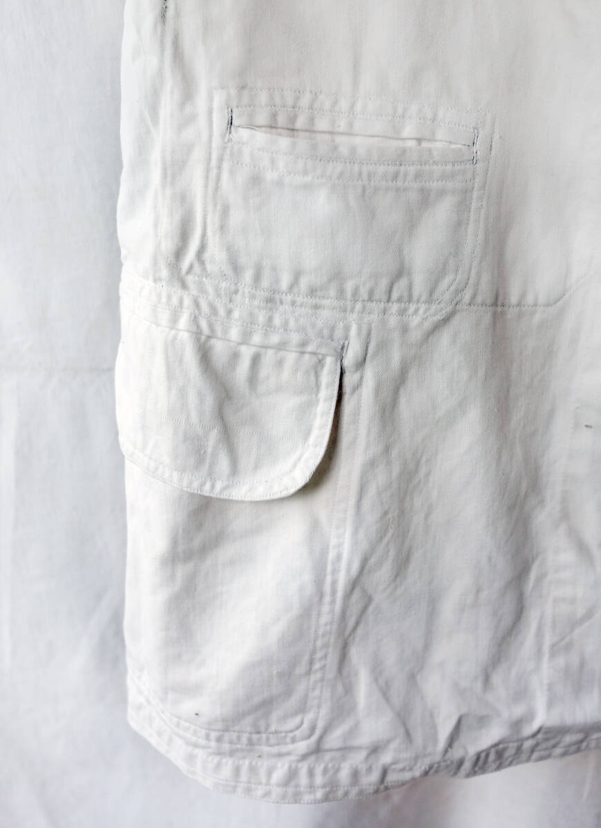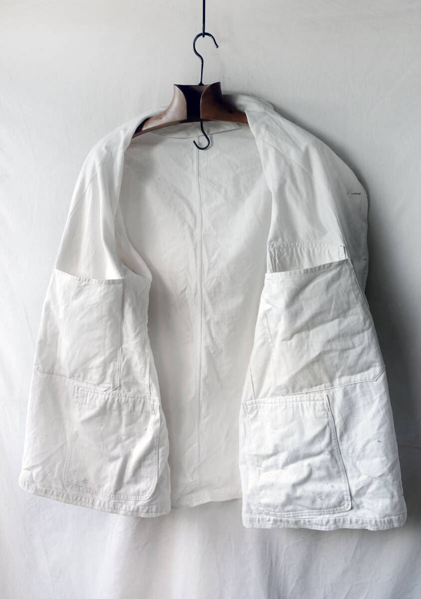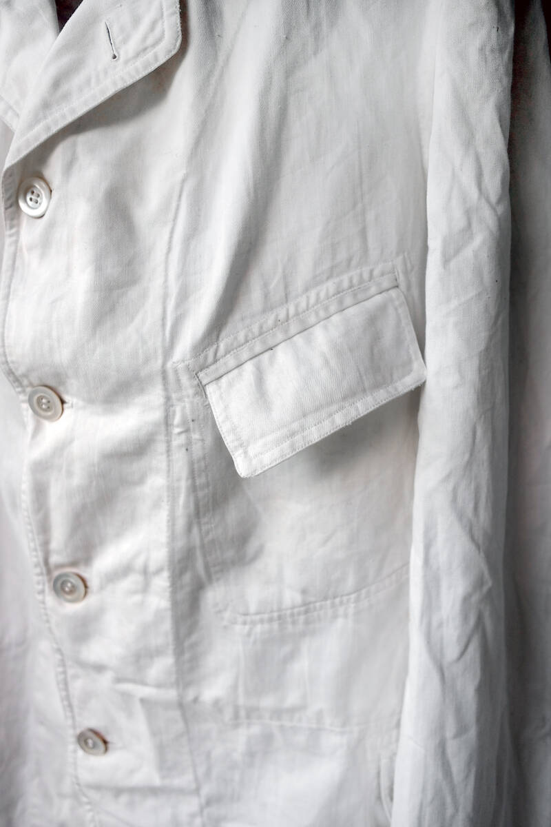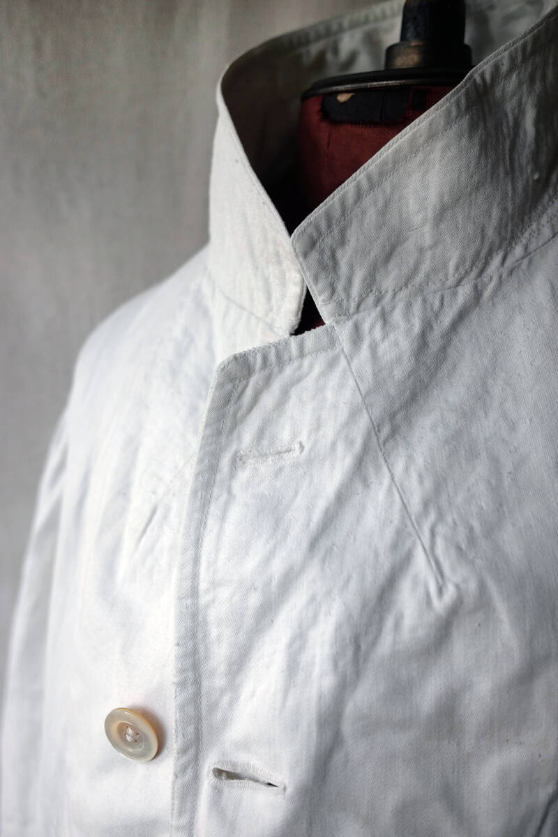1900's フランス ヴィンテージ 4ボタンサックコート リネン 玉縁チェンジポケット 10s 20s 30s ワークジャケット フレンチヴィンテージ