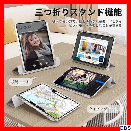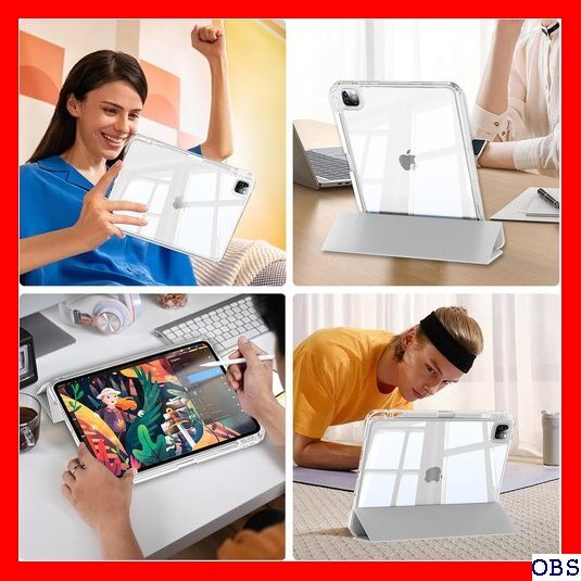GKABXY iPad Air 13インチ ケース M3/M2 2025/2024 iPad Pro 12.9インチ 第6 / 5 / 4世代 分離式 ケース 2022 2021 2020 取り外し可能 透明 クリアカバー アクリル 縦置き/横置きスタンド ペンシル収納 耐衝撃 軽量 精密設計 着脱簡単 アイパッド グレー 332
