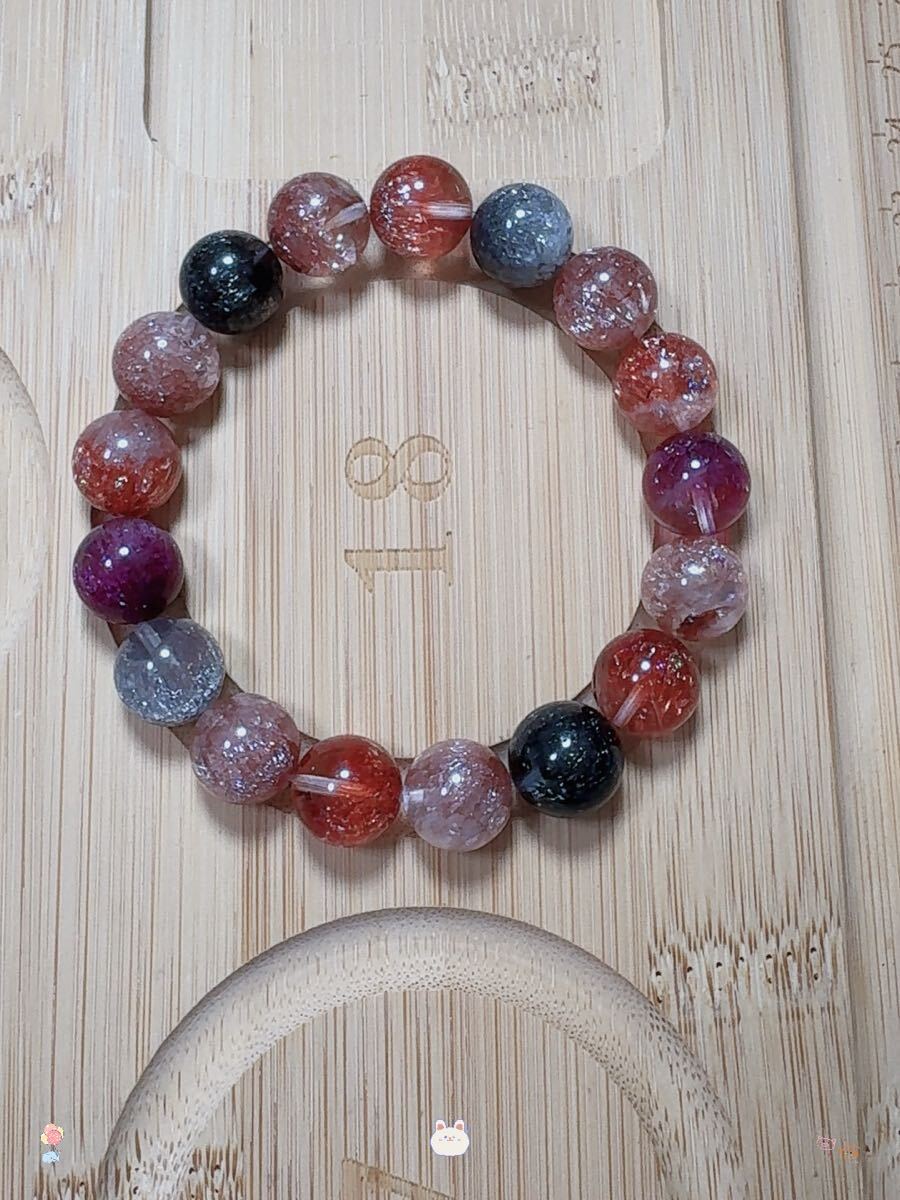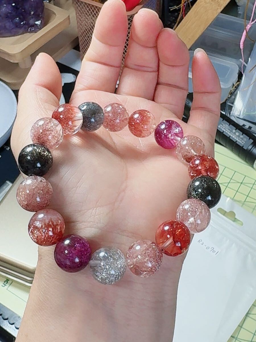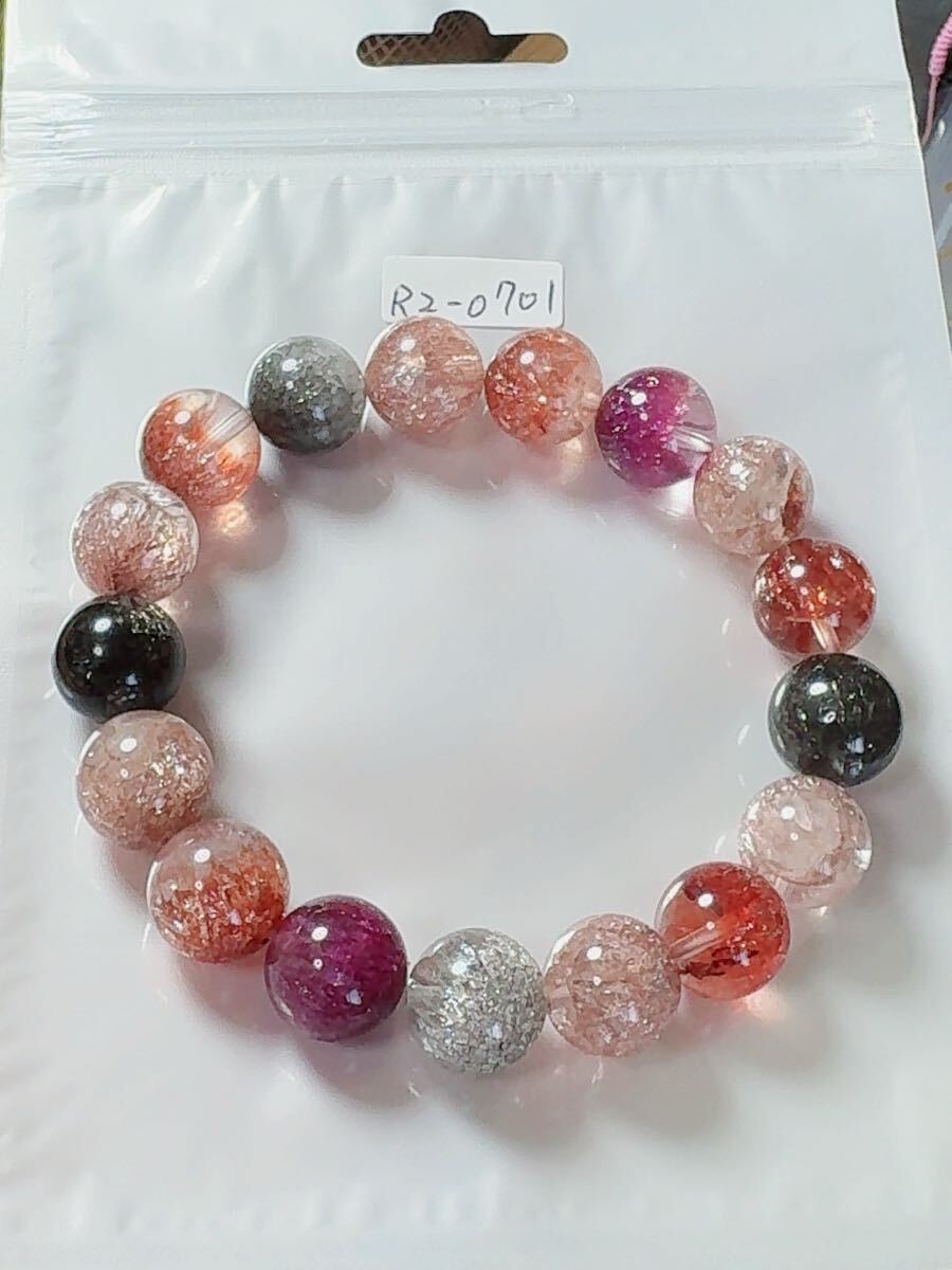 SS-0701 天然水晶 一点物 カラフル花火水晶 ブレスレット18cm/12.5mm 花火スーパーセブン 天然石 パワーストーン 開運 幸運