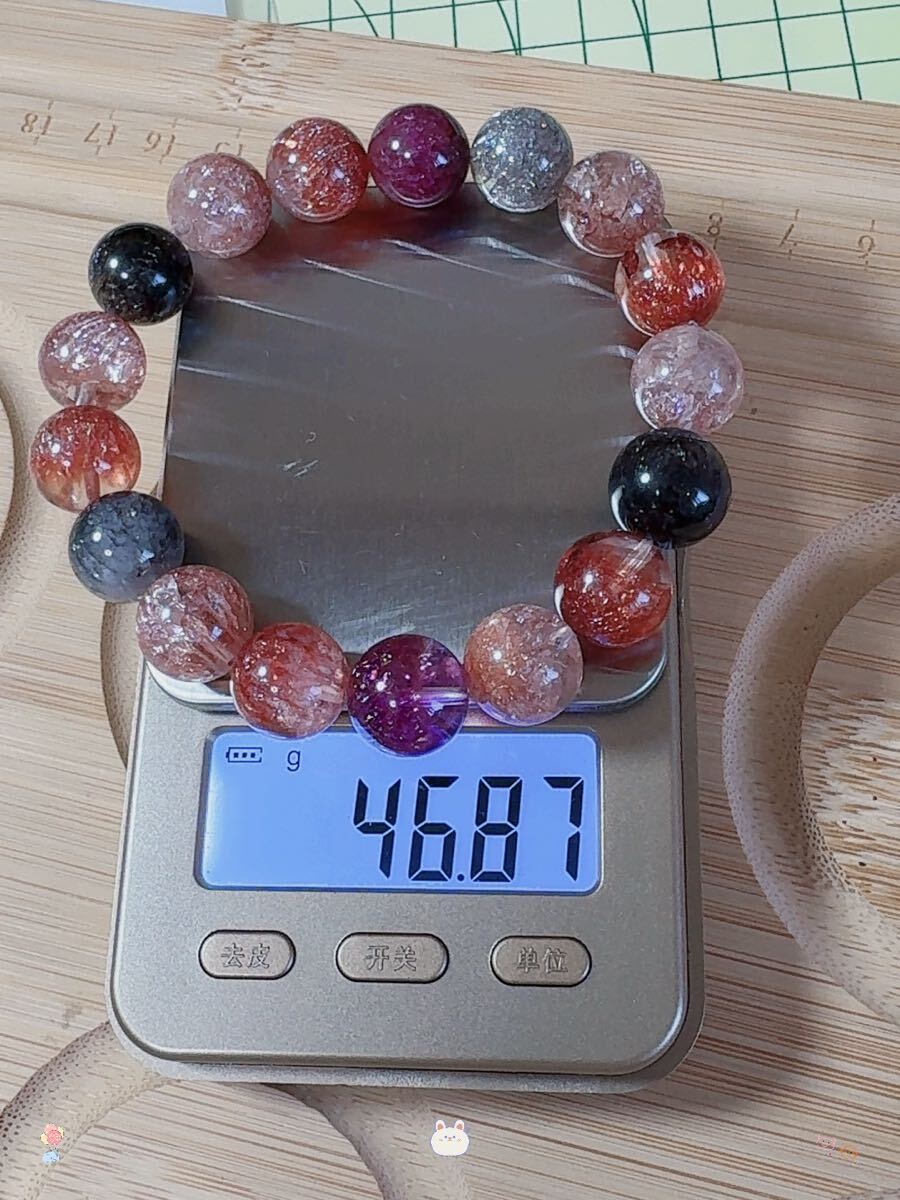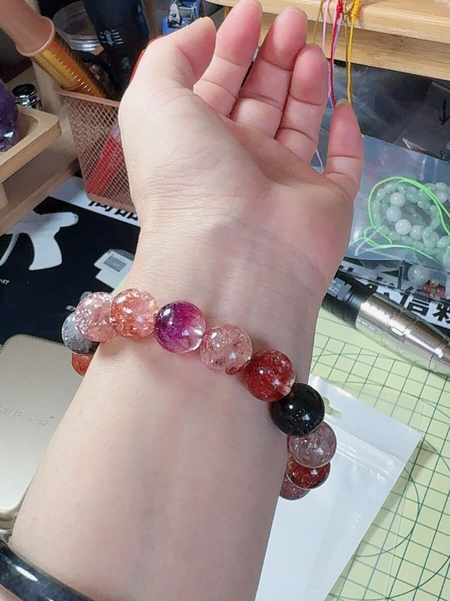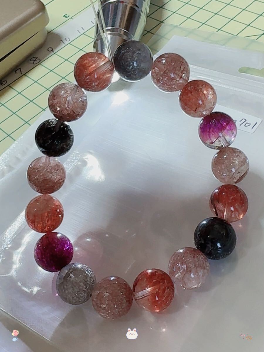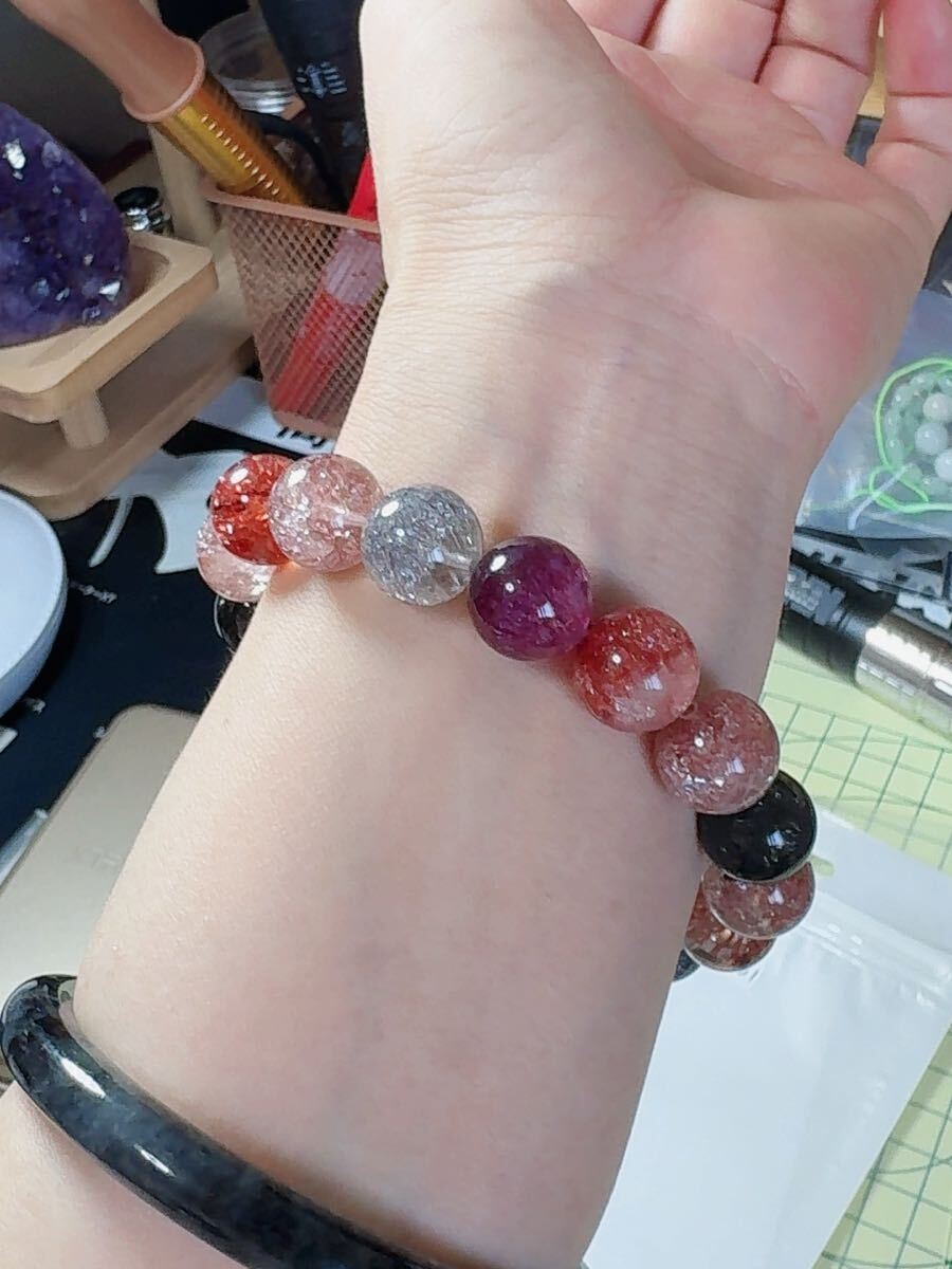 SS-0701 天然水晶 一点物 カラフル花火水晶 ブレスレット18cm/12.5mm 花火スーパーセブン 天然石 パワーストーン 開運 幸運