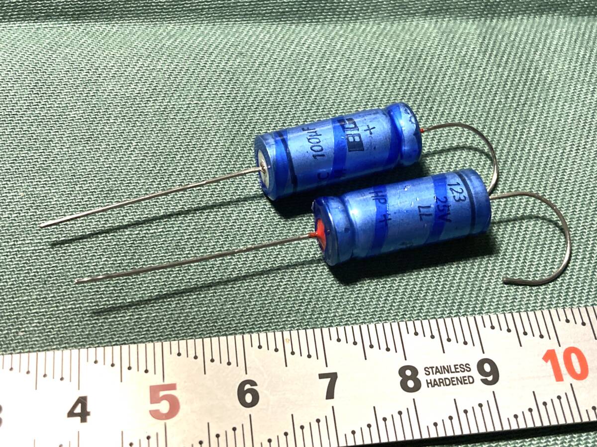 Philips, Vishay BCにはそっくりな外観の昔ながらの青いコンデンサもありますが(あちらは123ではありません)、本品123 SAL-A(Solid Aluminum, Axial)は新世代の固体電解コンデンサです。