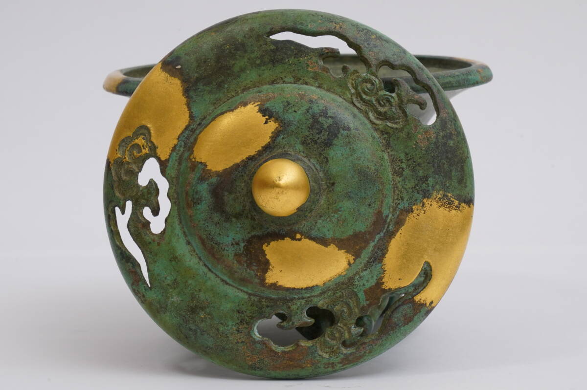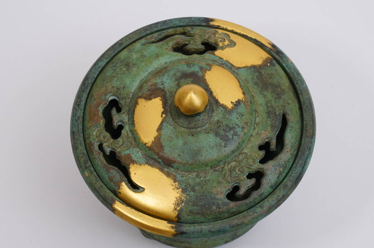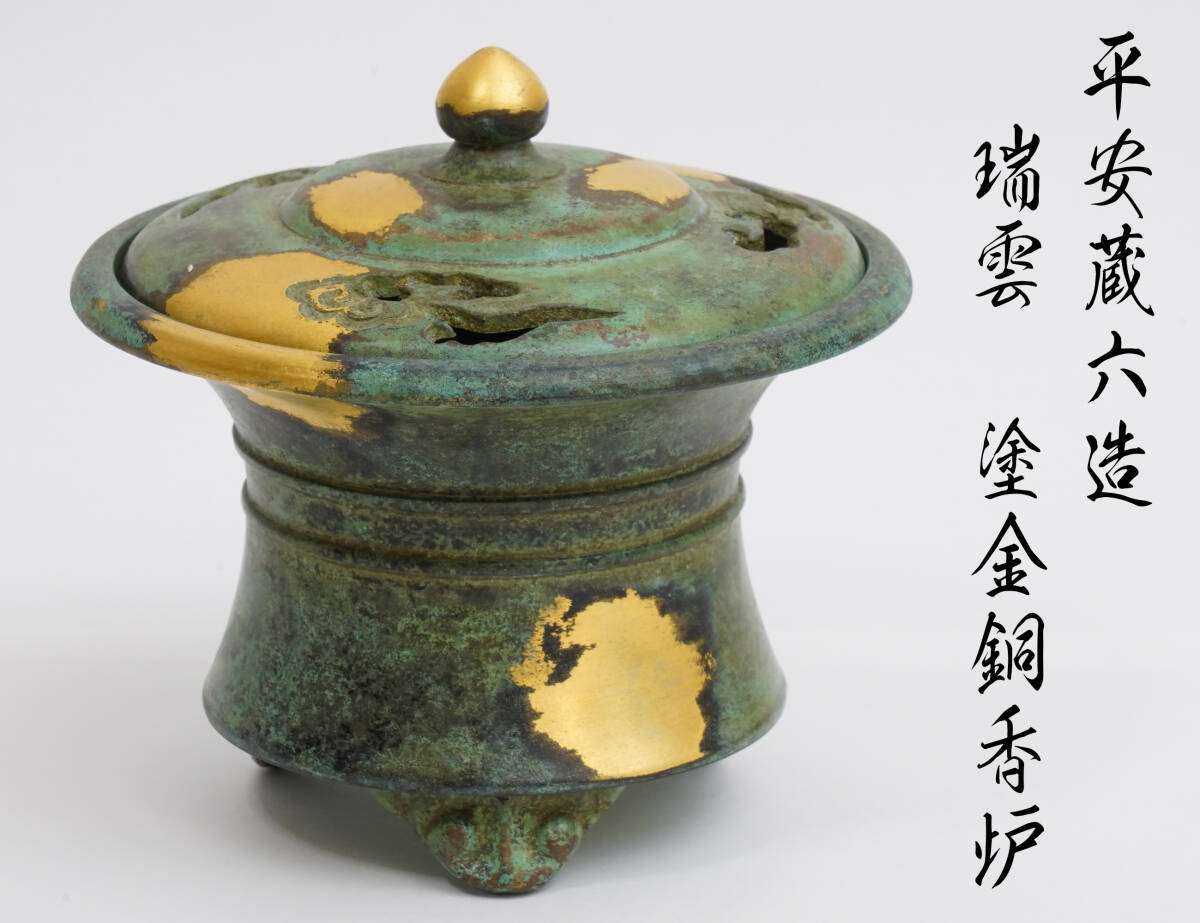 ◆商品名 | 平安 秦蔵六 瑞雲 雲透 塗金銅香炉 547g |