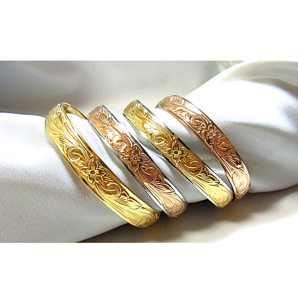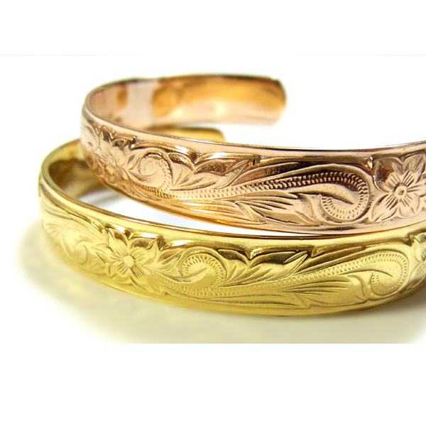 ハワイアンジュエリー ブレスレット バングル ゴールド プルメリア スクロール