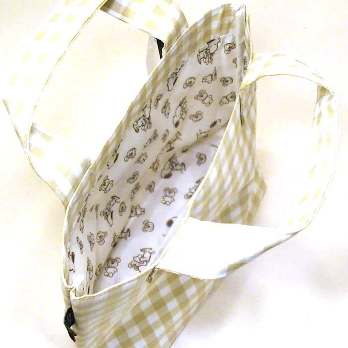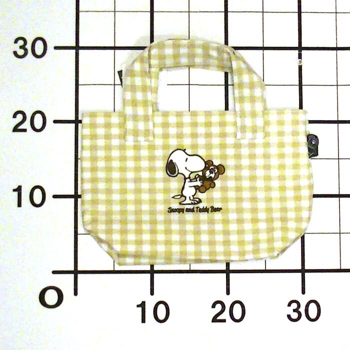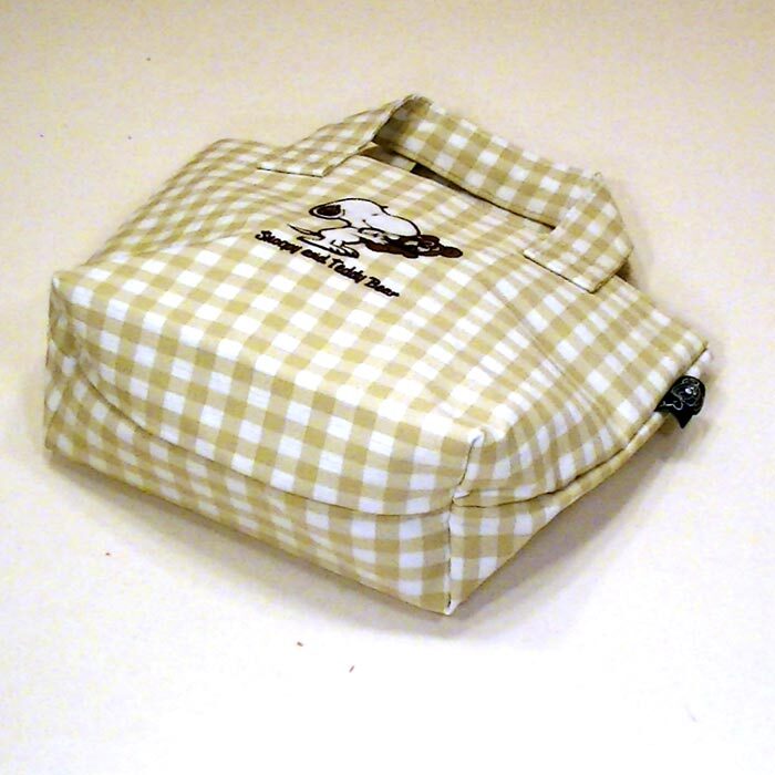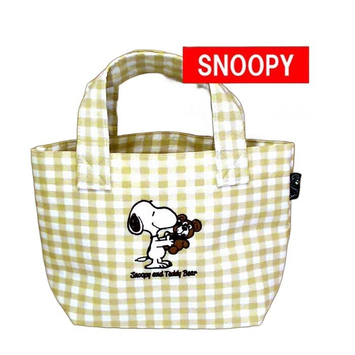 0219-14 トートバッグ ミニバッグ スヌーピー&ベア 刺繍入り ミニトート チェック 【雑貨店が販売・新品】