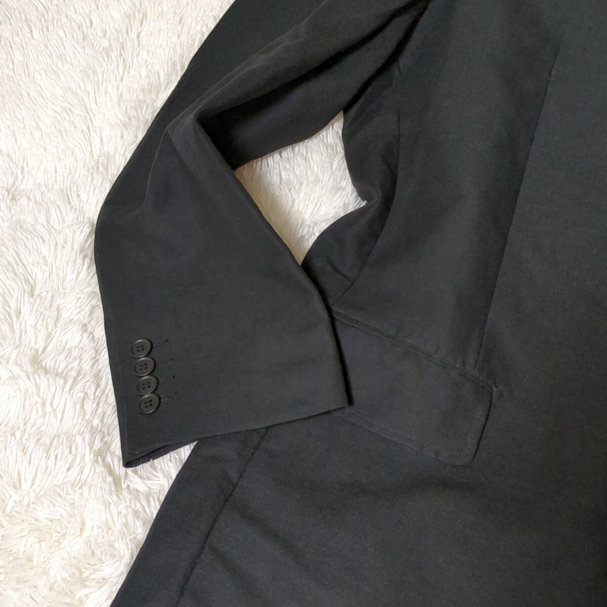 フロントは段返り3つボタン、背面裾はセンターベント(まだしつけ糸が付いた状態です)。