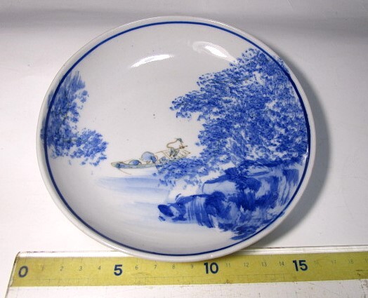 稀少 美品 ヴィンテージ★江戸期 山水紋 染付 中皿 なます皿 直径16cm 時代 有田焼 古伊万里 1枚★a 追加アリ